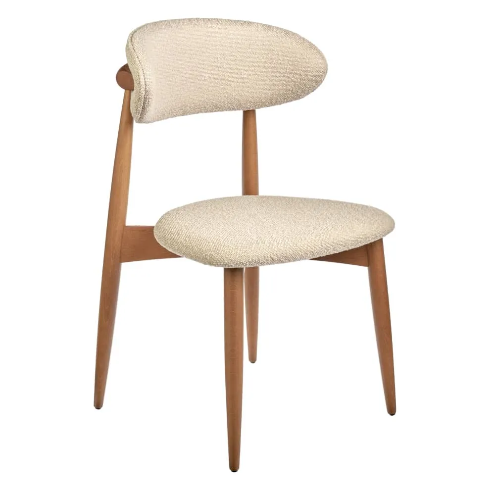 Сиденье и спинка изготовлены из высокоустойчивой ткани букле в цвете латте. Мягкие спинка и сидение обеспечивают максимальный комфорт. Оригинальный каркас из массива натурального дерева в цвете орех добавляет стулу элегантность. Стулья из бука отличаются прочностью и надежностью.