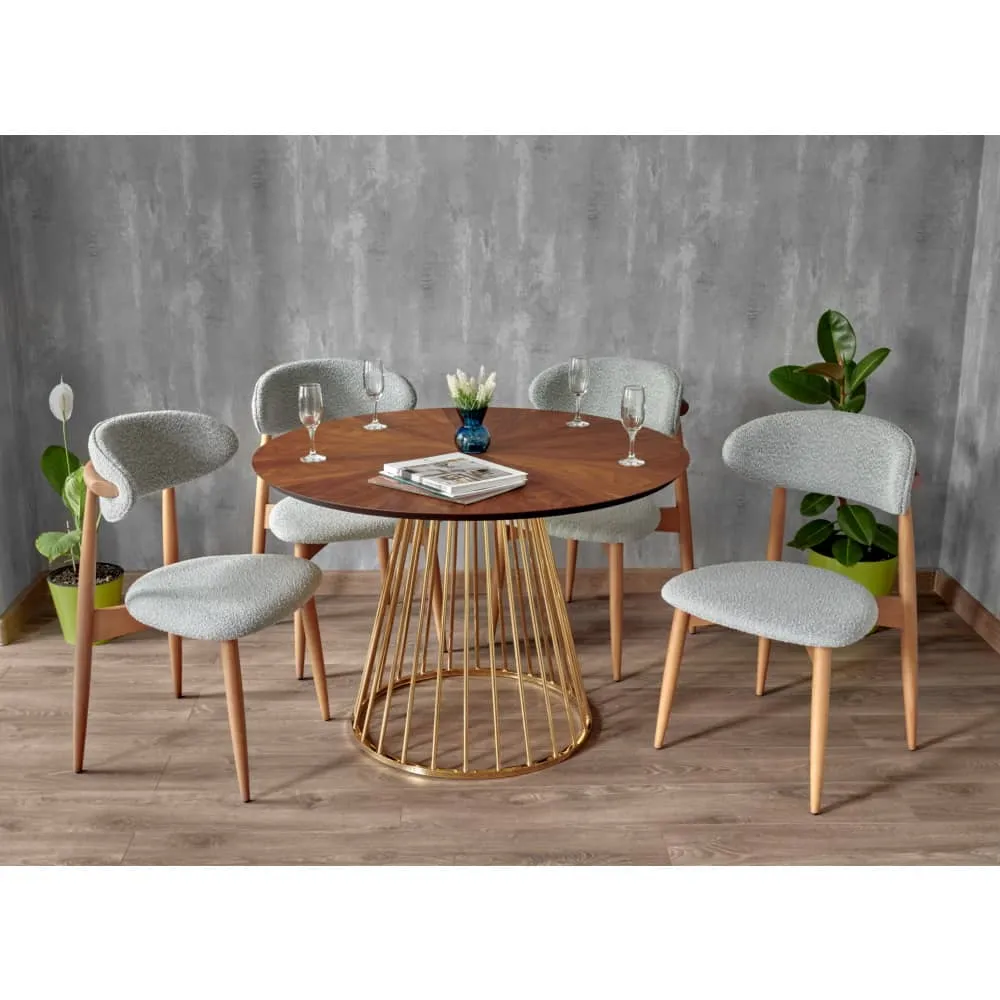 Сиденье и спинка изготовлены из высокоустойчивой ткани букле в светло-сером оттенке. Мягкие спинка и сидение обеспечивают максимальный комфорт. Оригинальный каркас из массива натурального дерева в цвете орех добавляет стулу элегантность. Стулья из бука отличаются прочностью и надежностью.