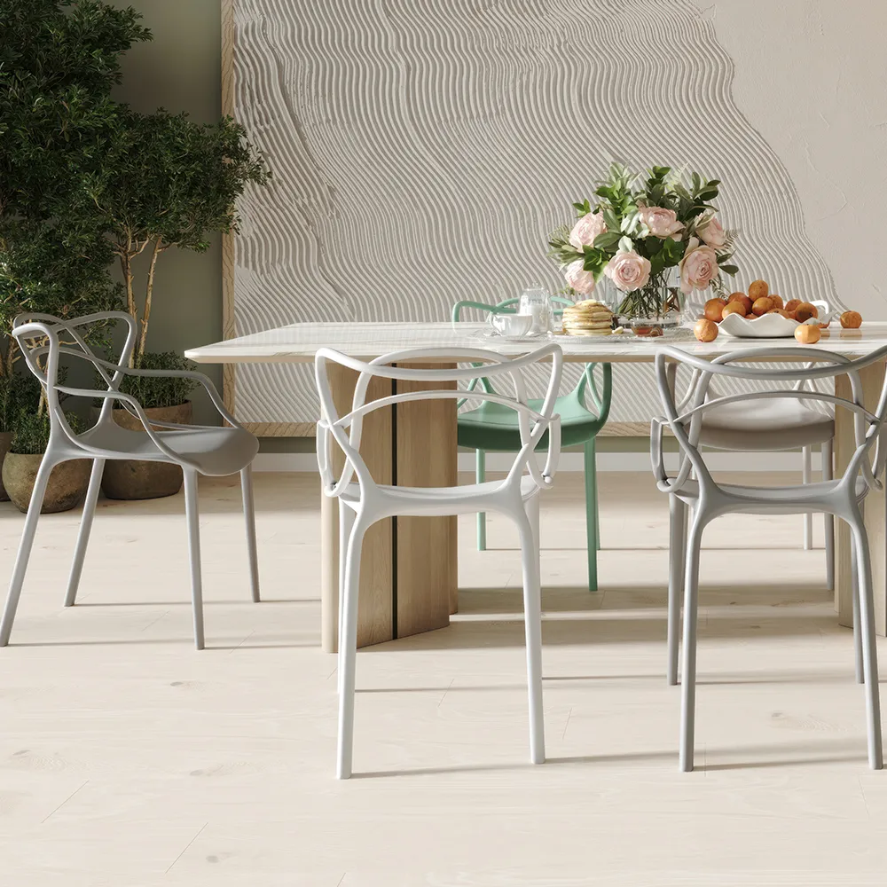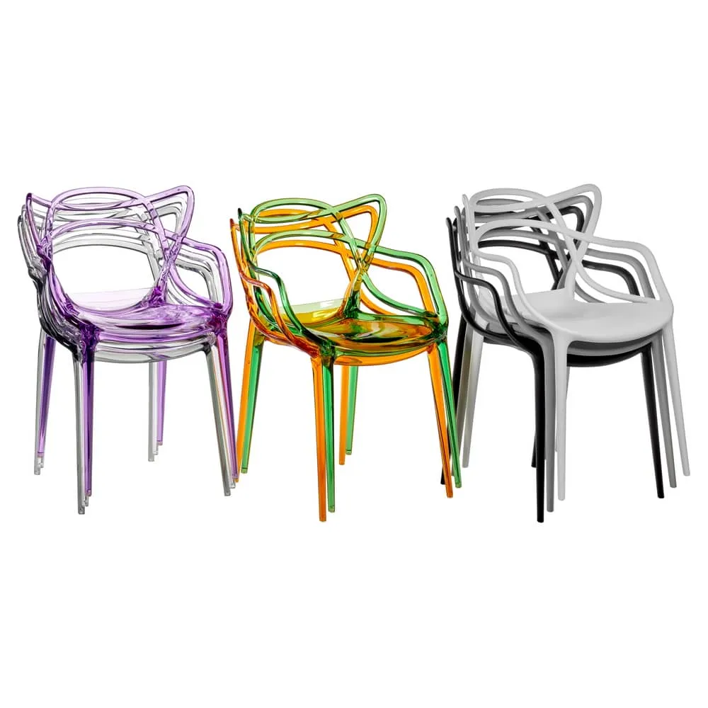 Варианты матовых отделок и металлизированного эффекта пластика расширяют возможность реализаций со стульями Masters в разных по стилю и дизайну помещениях.