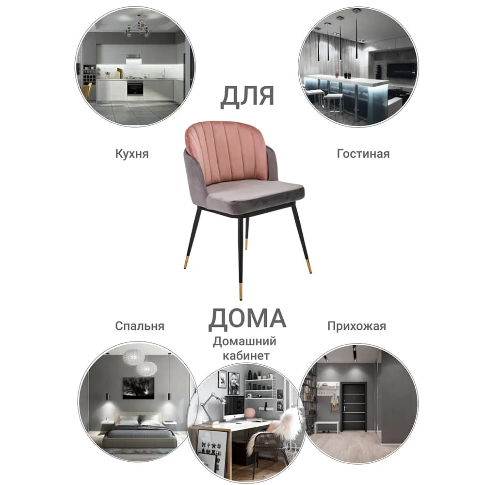 Мягкие стулья Peki станут истинным украшением интерьера в любом стиле. Они одинаково хорошо подойдут как для гостиной, так и для спальни и даже для кафе или ресторана. Стул с мягкой спинкой располагает к комфорту и уюту. Обивка — мягкий нежный велюр, к которому приятно прикасаться. При этом стул крепкий и надежный благодаря металлическому каркасу. Отличительная особенность серии — золотые кончики ножек, которые выполнены из металла, окрашенного в черный цвет. Сочетание серого с пудровым станет ярким акцентом в светлом интерьере или подчеркнет классический дизайн помещения.