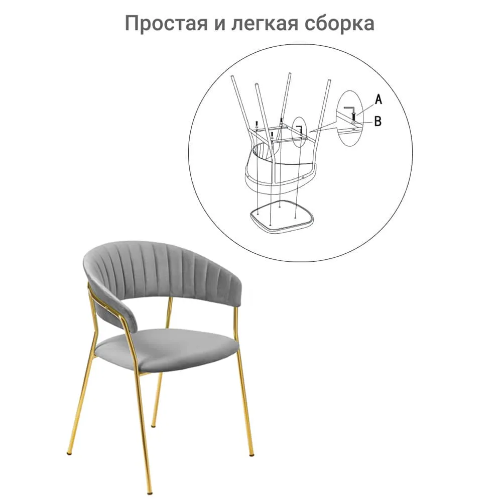 Материал: фанера, пенополиуретан, велюр Материал ножек: сталь Цвет ножек: золотой Размер: 56х50х78х48 см Вес: 6кг Максимальная нагрузка 150кг Поставляется в разобранном виде. В комплекте идёт инструкция и комплект аксессуаров для сборки.Характеристики