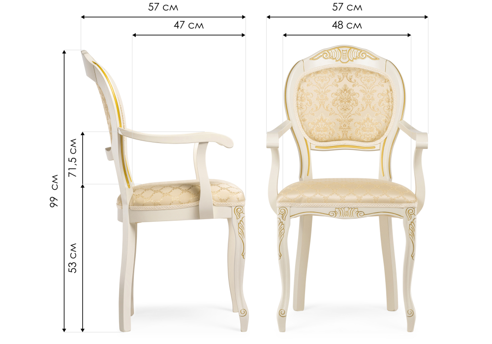 Стул деревянный Woodville Лауро патина золото, бежевый, ножки белые