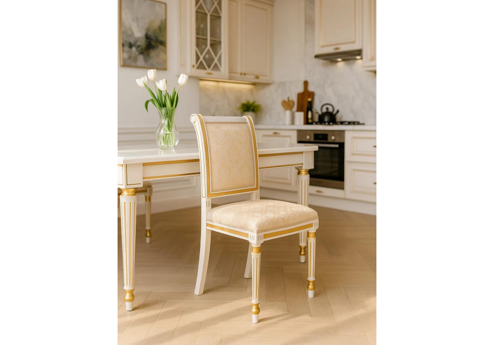 Стул деревянный Woodville Рембрандт молочный, золото патина, ножки белые
