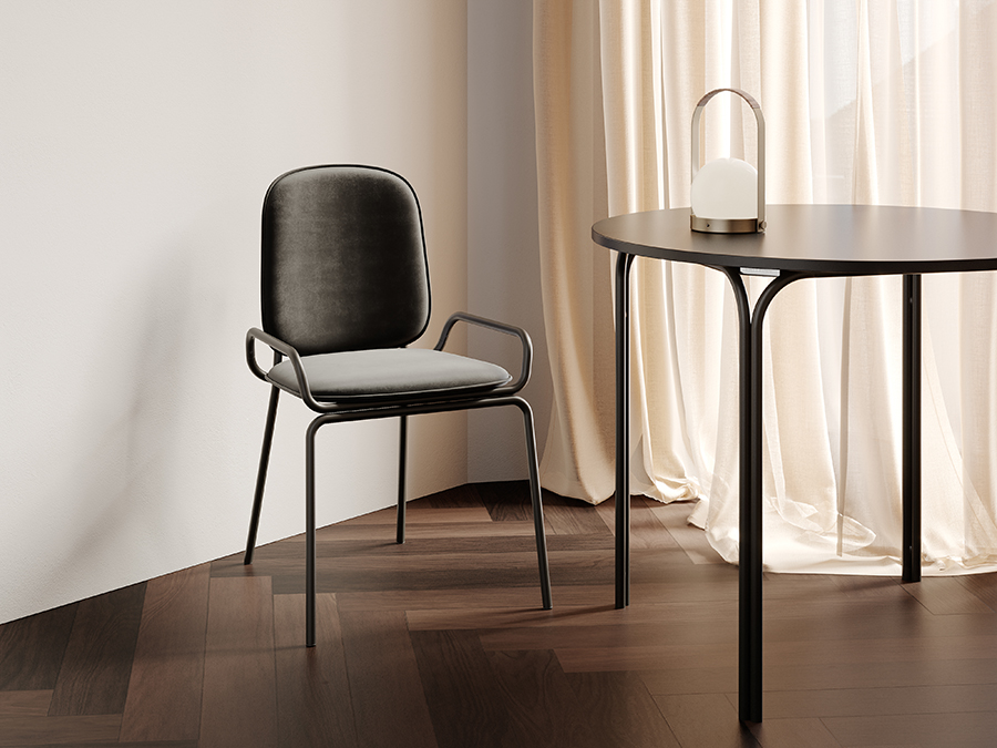Стальной каркас с порошковым покрытием делает конструкцию прочной и надежной, а мягкий велюр с бархатистой текстурой обеспечивает тактильный комфорт. Ткань обивки обладает высокими показателями износостойкости. Используемый в качестве наполнителя пенополиуретан отличается комфортной плотностью и жесткостью.
