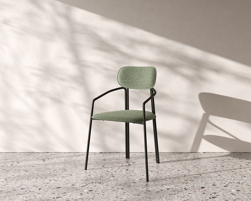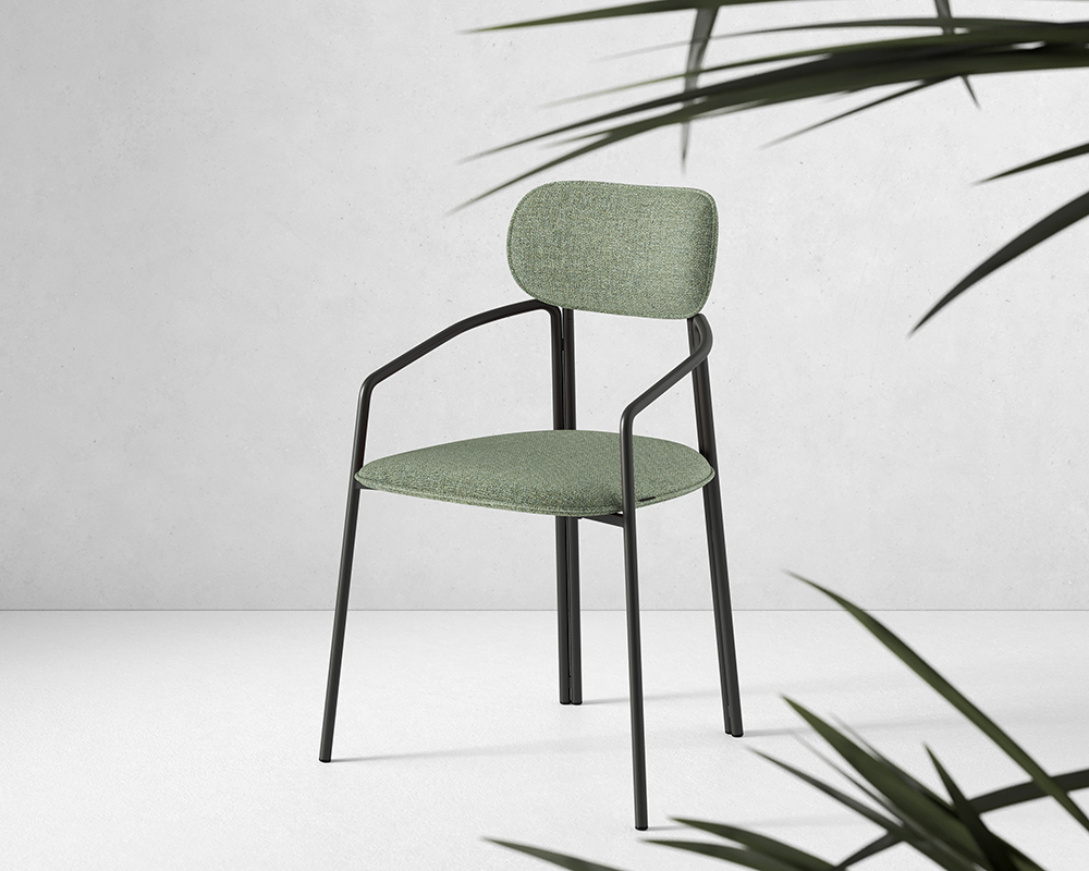 Стальное основание с порошковым покрытием делает конструкцию прочной и надежной, а меланжевая ткань обивки обладает высокими показателями износостойкости. Используемый пенополиуретан отличается комфортной плотностью и жесткостью.