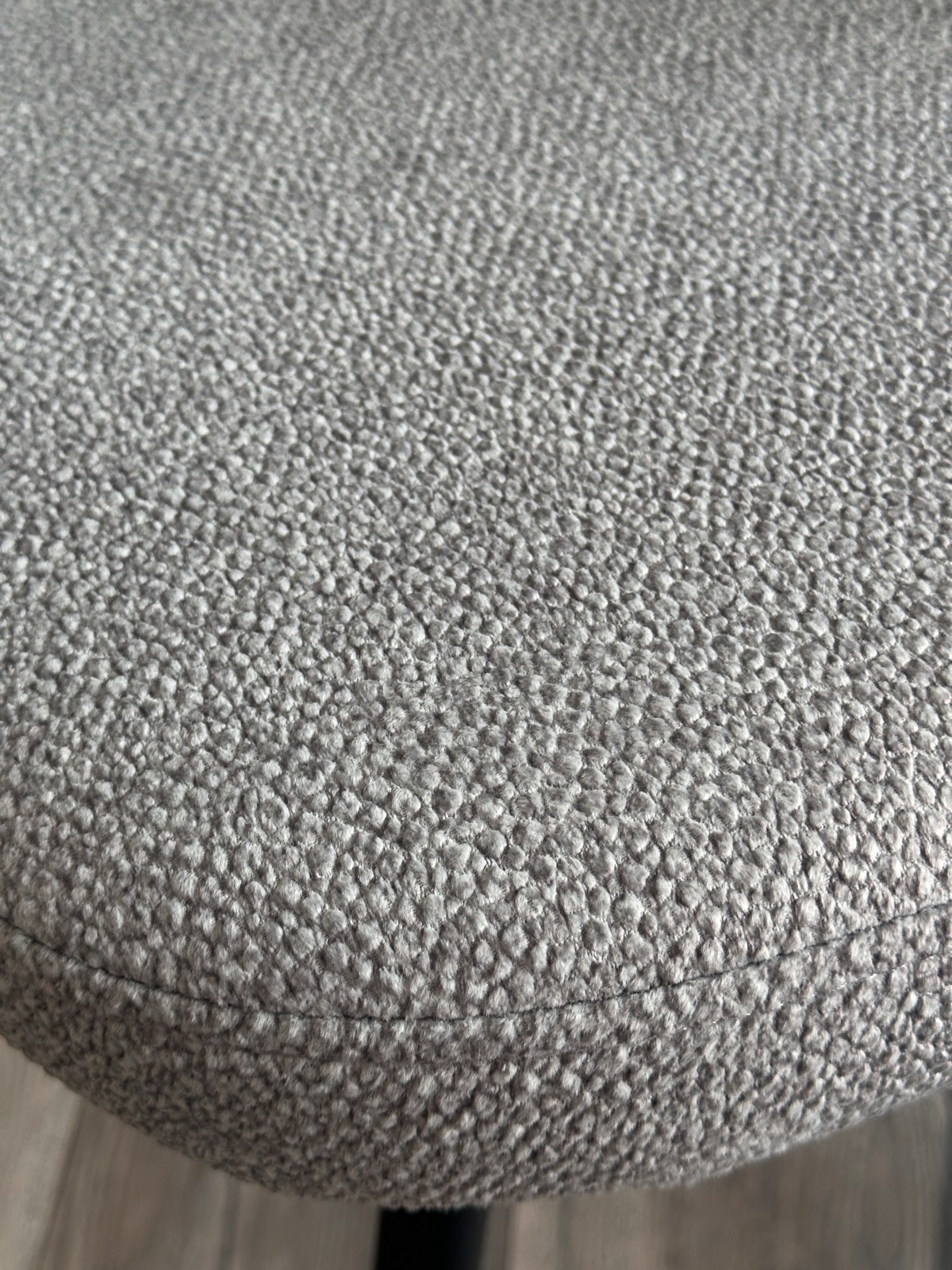 Обивка - букле. Ткань очень приятная на ощупь, легко чистится, не выгорает, отсутствие катышков.