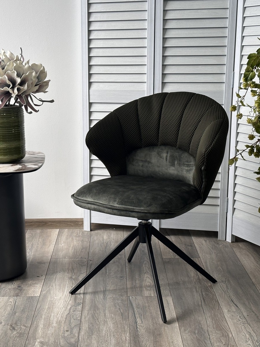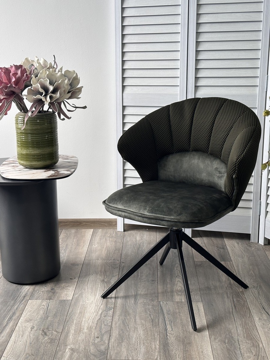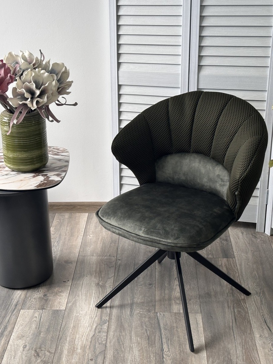 Стул М-City DISAUR Астра (Astra) поворотный на поворотный на 360 градусов, Зеленый Sonic 77 ткань, 7525-156 Велюр, Черный каркас