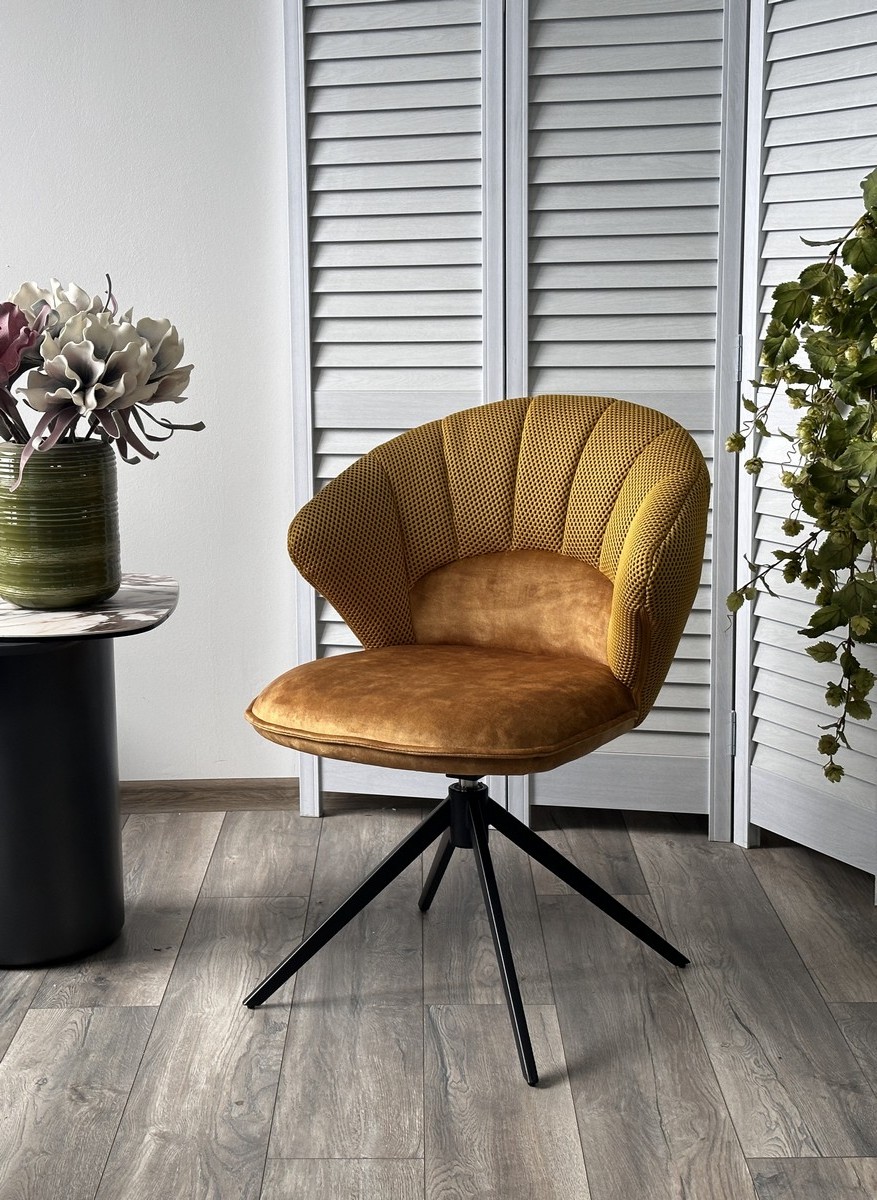 Стул М-City DISAUR Астра (Astra) поворотный на поворотный на 360 градусов, Желтый Sonic 68 ткань, 7525-132 Велюр, Черный каркас
