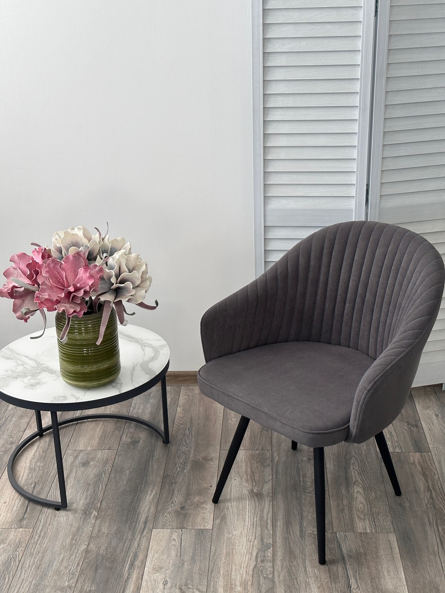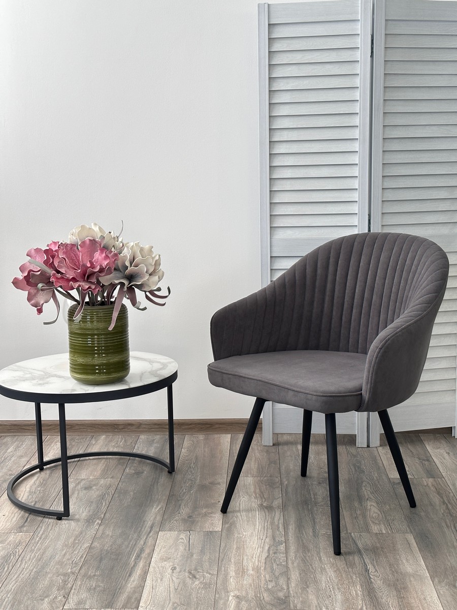 Стул М-City DISAUR Авиор (Avior) поворотный на поворотный на 360 градусов, B28 темно-серый, Велюр, Черный каркас