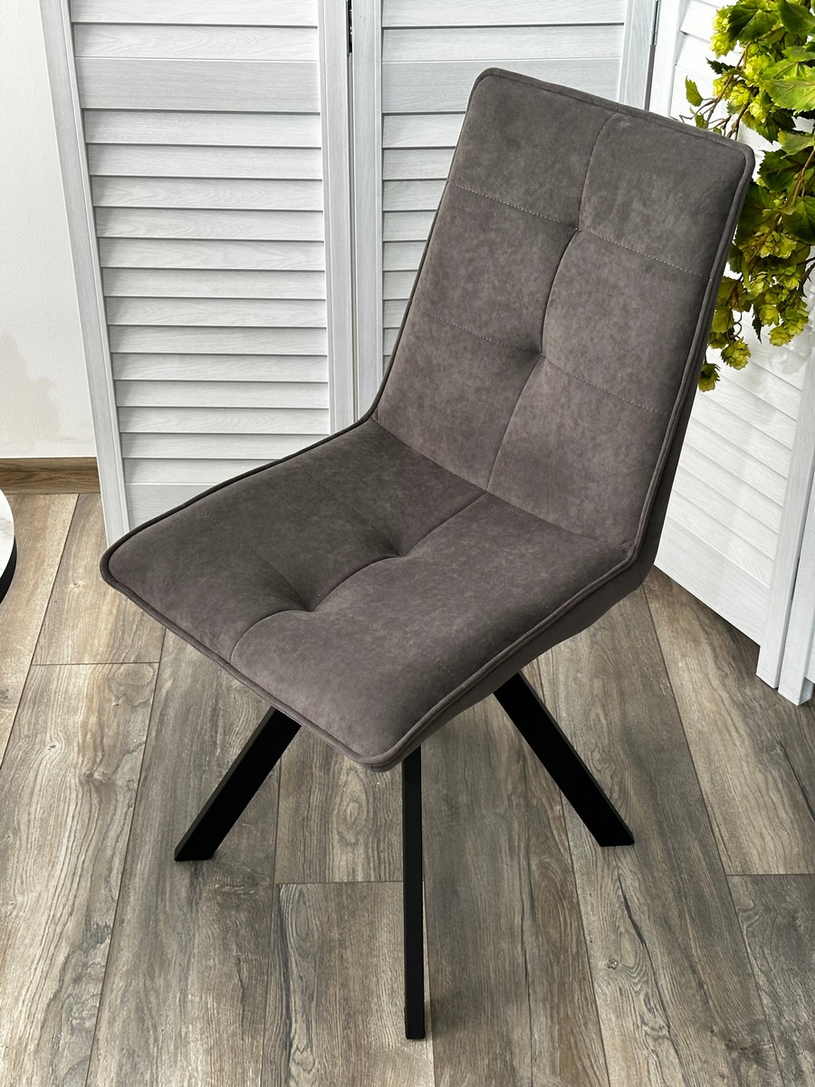 Стул М-City DISAUR Бронкс (Bronx), поворотный на поворотный на 360 градусов, B28 темно-серый, Велюр, Черный каркас