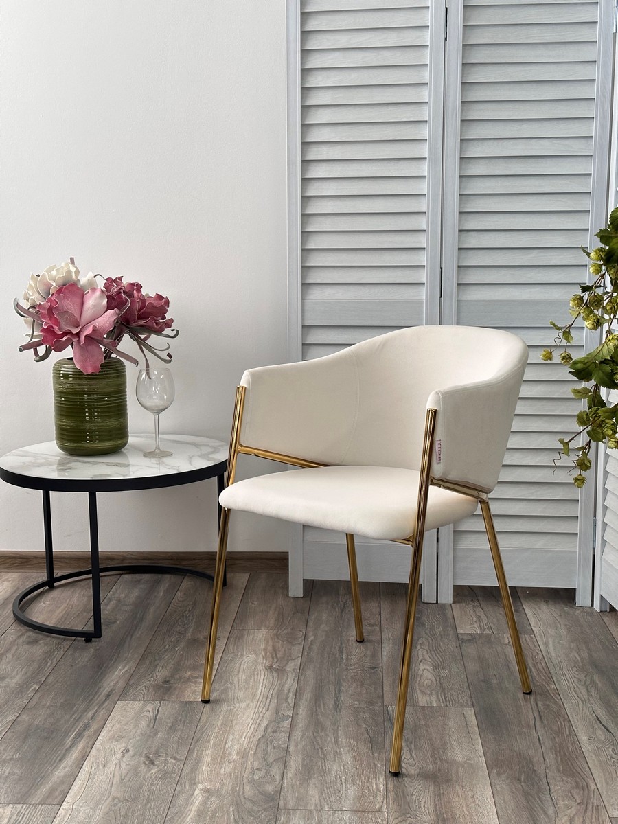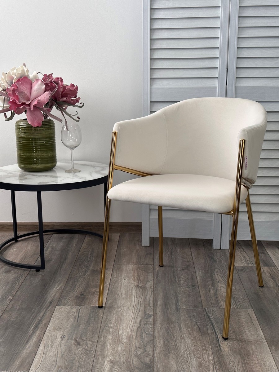 Стул М-City DISAUR Дилл (Dill) Momo-01 Молочный, Велюр "Беспальчиковый", Золотой каркас