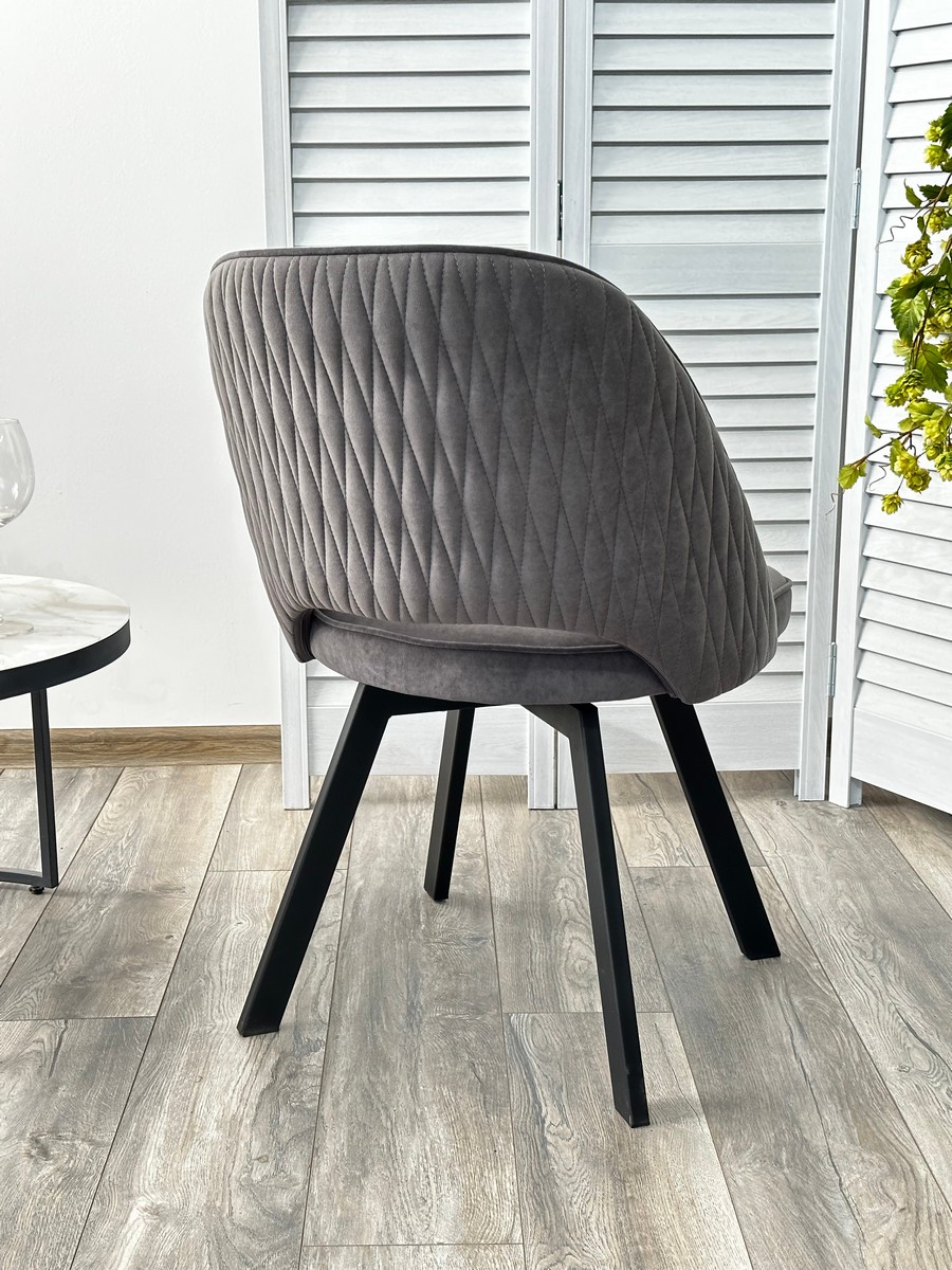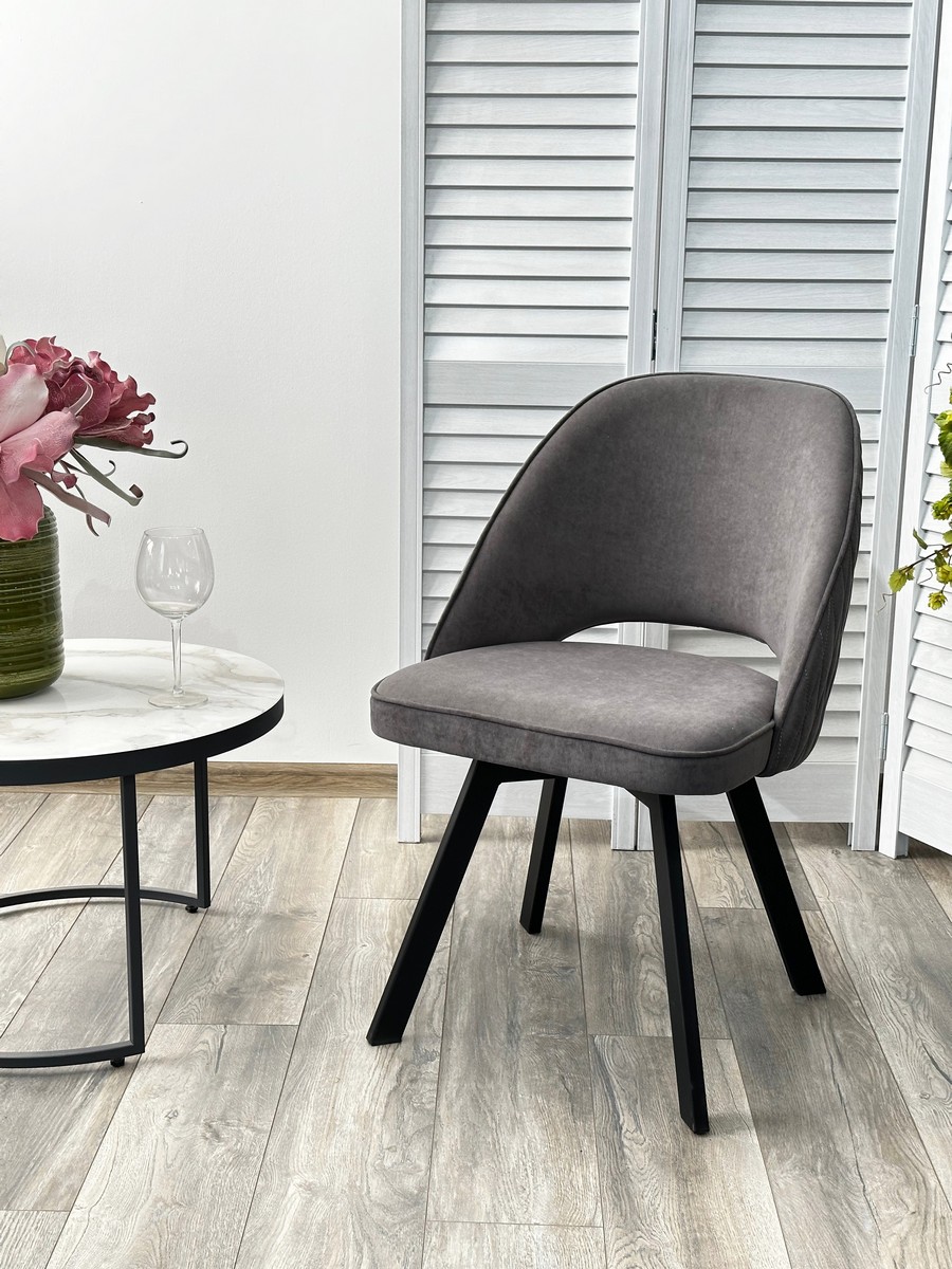 Стул М-City DISAUR Дуна (Duna) поворотный на поворотный на 360 градусов, B28 темно-серый, Велюр, Черный каркас