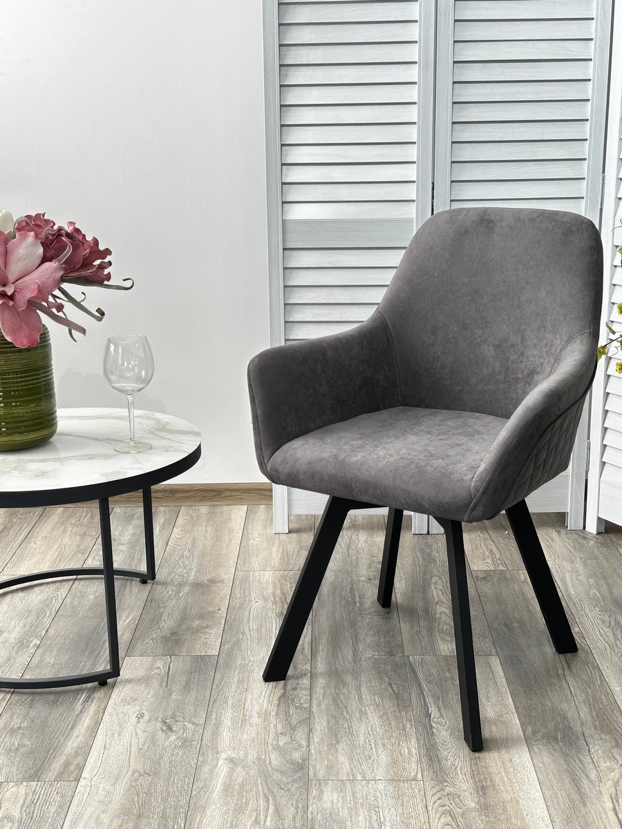 Стул М-City DISAUR Джет (Jet) поворотный на поворотный на 360 градусов, B28 темно-серый, Велюр, Черный каркас