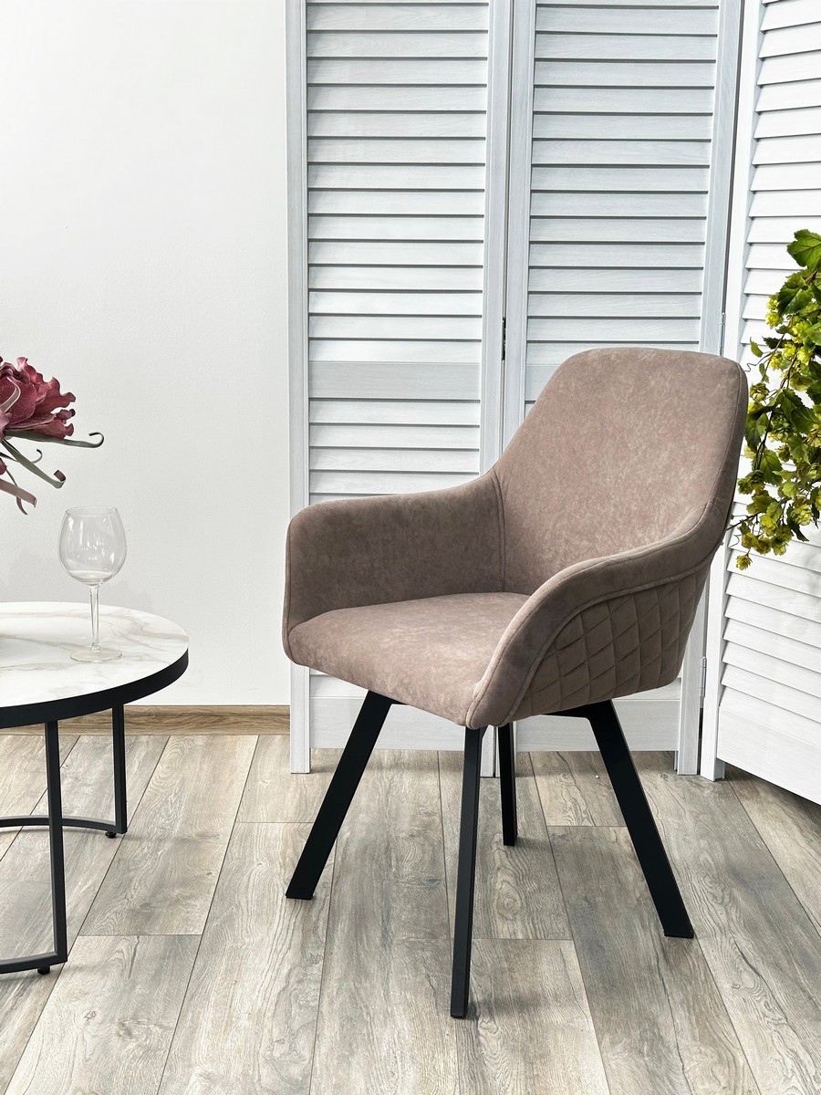 Стул М-City DISAUR Джет (Jet) поворотный на поворотный на 360 градусов, B5 Капучино, Велюр, Черный каркас