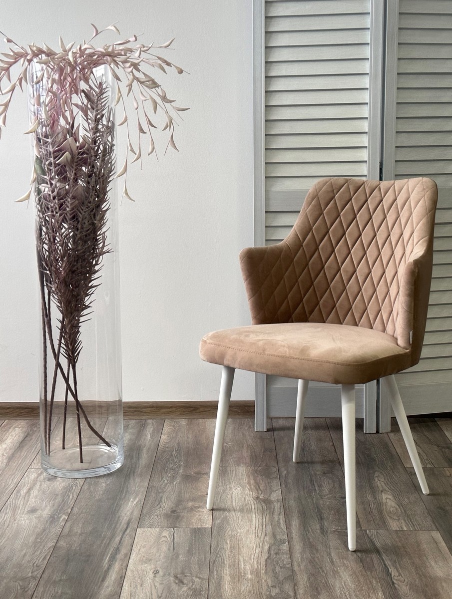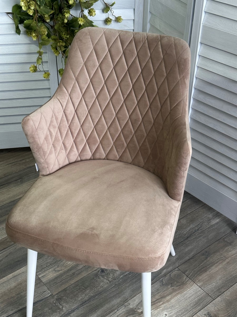 Стул М-City DISAUR Герман (Herman) поворотный на 360 градусов, Бежевый 5, Велюр, Белый каркас