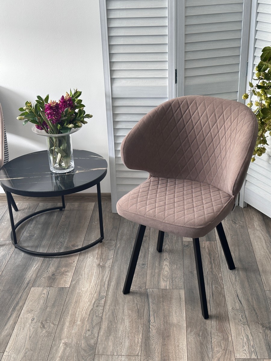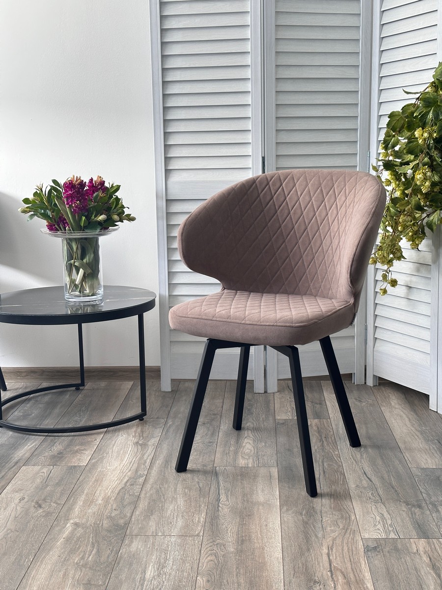 Стул М-City DISAUR Хилтон поворотный на 360 градусов, B5 Капучино, Велюр, Черный каркас