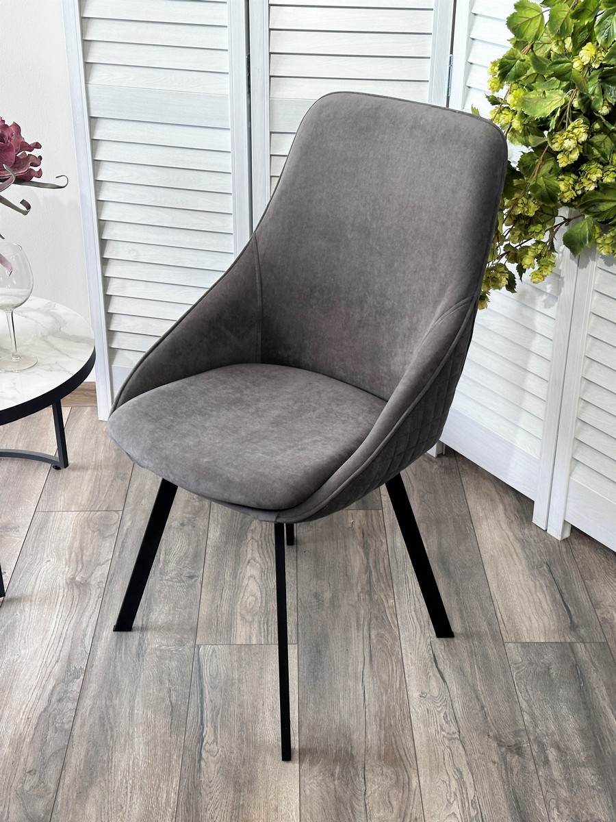 Стул М-City DISAUR Каса (Casa), поворотный на поворотный на 360 градусов, B28 темно-серый, Велюр, Черный каркас