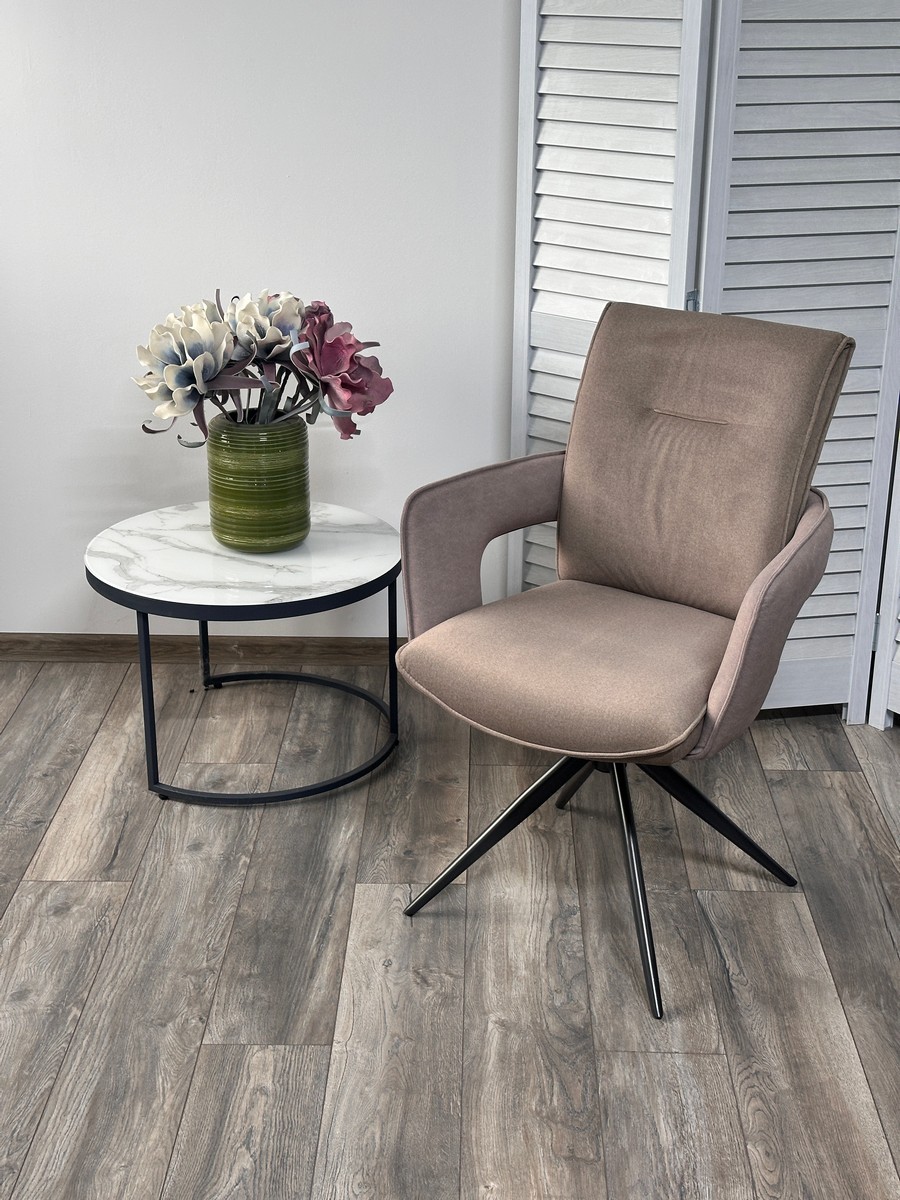 Стул М-City DISAUR Киннет (Kinnet) поворотный на поворотный на 360 градусов, Цв Шоколад Mohair-440, Castel-20, ткань, Тем.-Серый