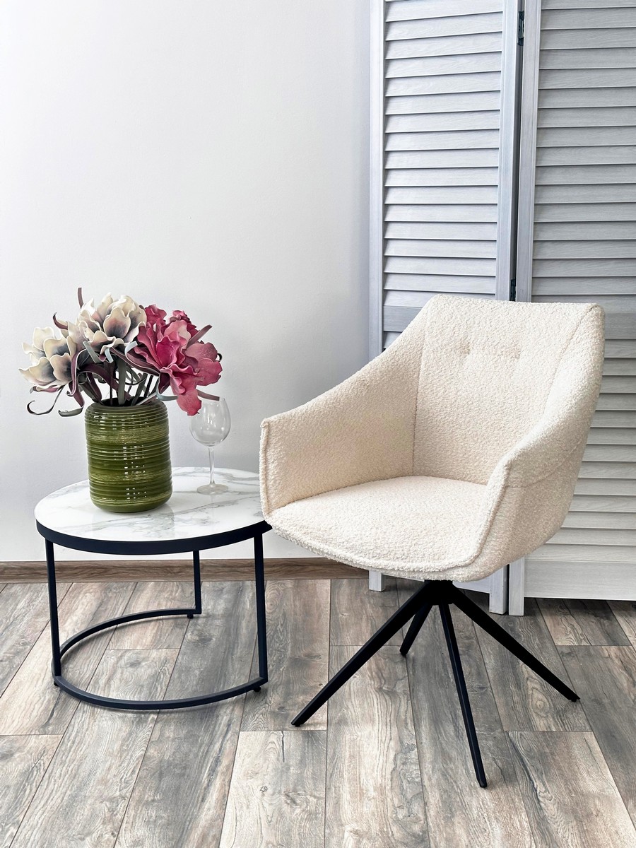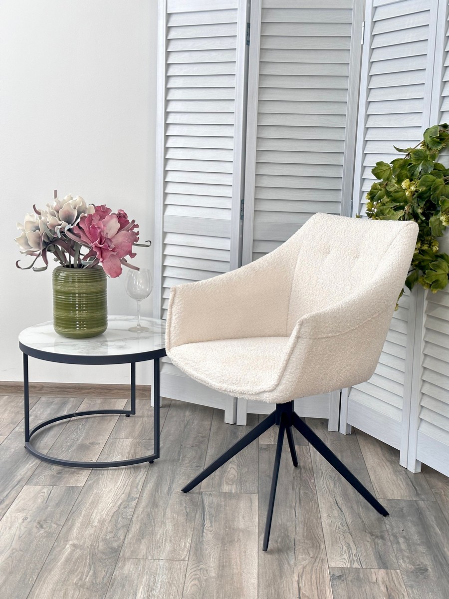 Стул М-City DISAUR Клаудс (Clouds) поворотный на поворотный на 360 градусов, Белый Wales 101, букле, Черный каркас