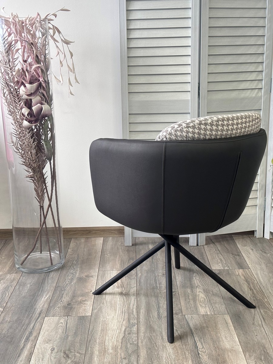 Сиденье и спика - шенилл "гусиная лапка", задняя часть экокожа темно-серого цвета..