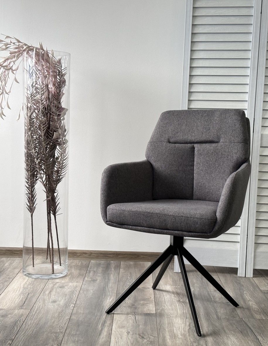 Стул М-City DISAUR Мон (Mon) поворотный на поворотный на 360 градусов, Серый Family-022, ткань, Черный