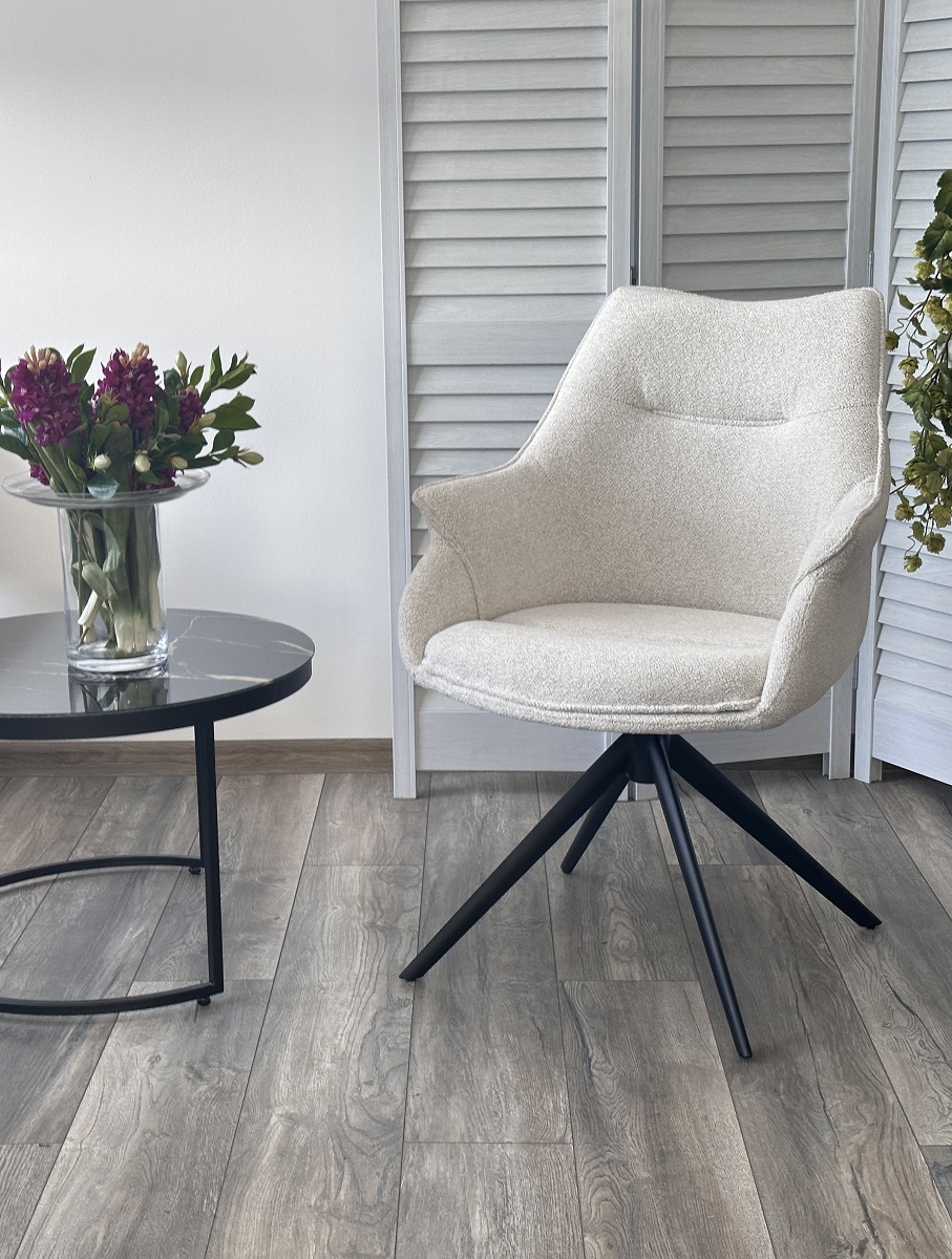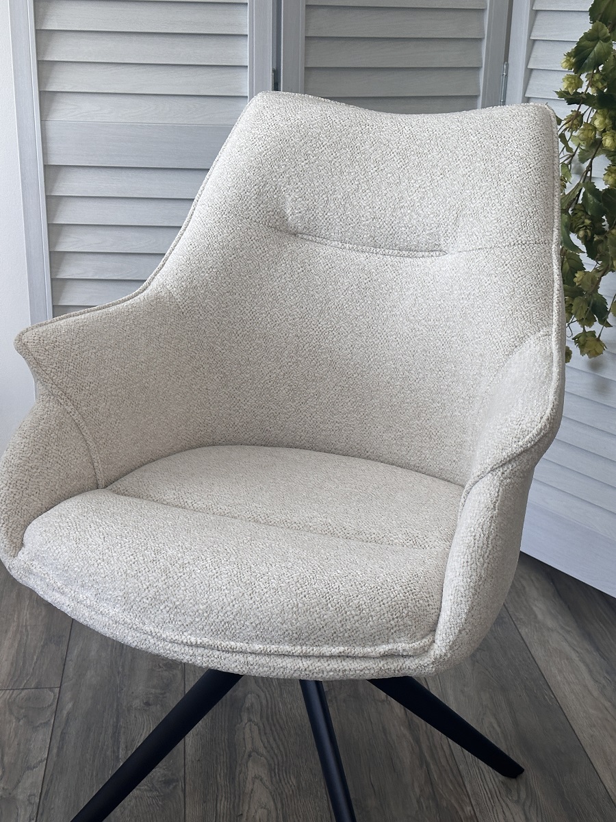Стул М-City DISAUR Ове (Ove) поворотный на поворотный на 360 градусов, Raven22 Бежево-белый, ткань, Черный