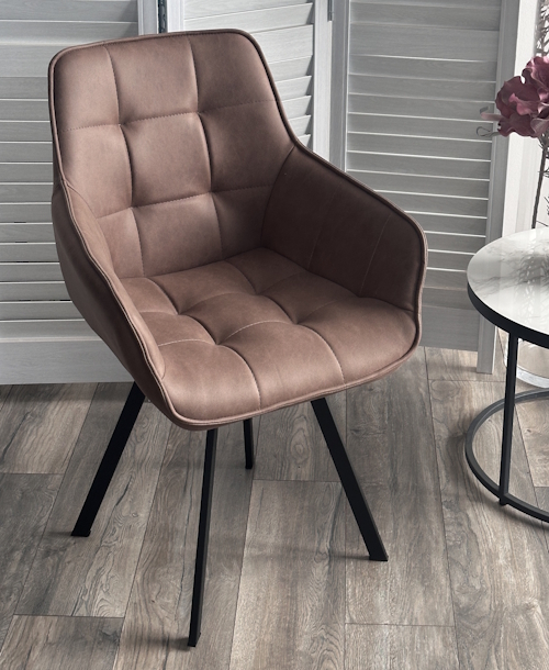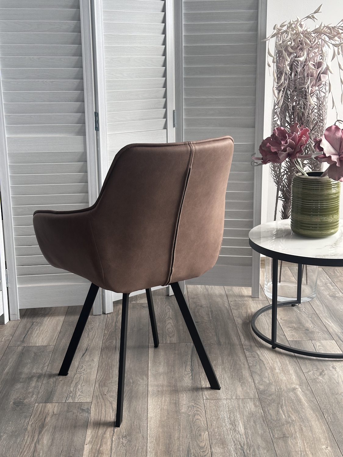 Стул М-City DISAUR Солис поворотный на поворотный на 360 градусов, Федерика Шоколад, искусственная замша, Черный каркас