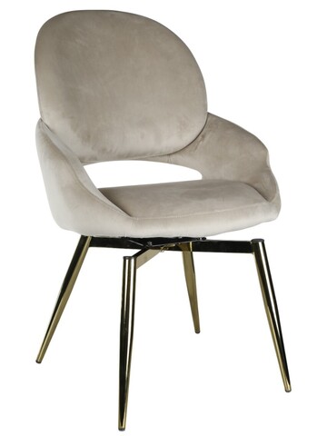 Дизайнерский обеденный стул в современном стиле с поворотным механизмом, с мягкой спинкой и сидением из велюра бежевого цвета Стул обеденный Виола BS1377-BG-2 — это стильное и удобное решение для современного дома или уютного кафе. Этот обеденный дизайнерский стул сочетает в себе элегантный внешний вид, функциональность и комфорт. Модель оснащена удобным поворотным механизмом, что позволяет свободно перемещаться без необходимости вставать со стула. Это особенно удобно при использовании за островной кухней, а также в условиях ограниченного пространства. Конструкция мягкого обеденного стула со спинкой повторяет анатомические линии тела и обеспечивает оптимальную поддержку спины. Благодаря продуманной эргономике, модель идеально подходит как для длительных семейных обедов, так и для вечерних встреч с гостями. Обивка выполнена из мягкого и приятного на ощупь велюра бежевого цвета, который добавляет интерьеру уюта и роскоши. Такая отделка легко вписывается в разные стилистические решения: от скандинавского минимализма до гламурного интерьера. Каркас изготовлен из прочного металла с покрытием цвета золото, обеспечивающим не только долговечность, но и яркий декоративный эффект. Золотые ножки делают стул заметным акцентом и подчеркивают его статусный дизайн. Размеры 50*58*92 см идеально соответствуют стандартной высоте обеденных столов (75–76 см), обеспечивая комфортную посадку. Этот обеденный стул станет отличным выбором для тех, кто ценит стиль, качество и практичность в деталях. Материал обивки сидения велюр, цвет бежевый Ножки - металлические, цвет-глянцевое золото высота 92 см ширина 58 см глубина сидения 50 см высота до сидения 42 см 2шт/1кор Размер коробки 76х72х62 см Вес брутто коробки 23,35 кгХарактеристики