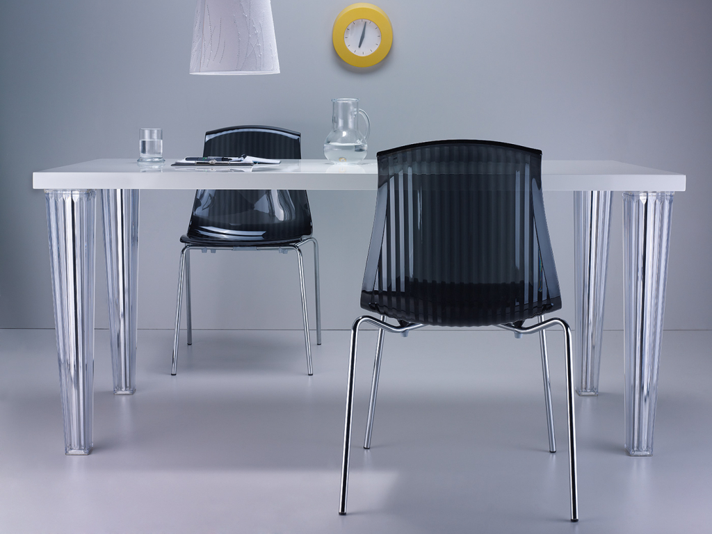 Пластиковый стул Allegra с корпусом из перерабатываемого поликарбоната и ножками из хромированной стали. Поликарбонат Makrolon® - чрезвычайно прочный, легкий материал, устойчивыйк ударам даже при низких температурах. Стулья серии Allegra с пластиковым сиденьем и спинкой станут отличным выбором для обстановки фуд-кортов, кафе, ресторанов и баров. Благодаря использованию высококачественных материалов они долгое время не теряют своего привлекательного внешнего вида, даже несмотря на активную эксплуатацию. Благодаря хромированному стальному каркасустулья Allegra устойчивы и, несмотря на вес всего в 5.5 кг, выдерживают большие нагрузки. Особенности: изготовлен из высококачественного прозрачного поликарбоната; каркас выполнен из хромированной стали; штабелируемый - занимает минимум места при хранении; подходит для использования исключительно в помещении. Открыть технические характеристики. Информация по уходу: прозрачные стулья можно протирать тряпкой из микрофибры, допускается применение нейтрального мыльного раствора. Запрещается использовать спиртосодержащие или ацетоносодержащие (а также им подобные) средства.Характеристики