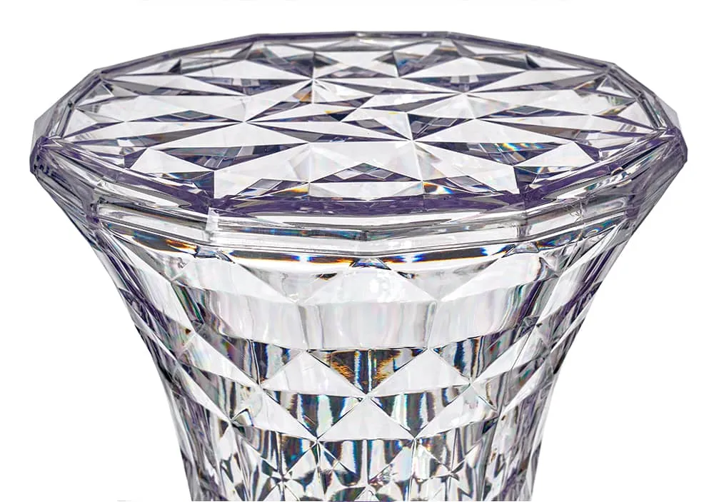 Простая и симметричная форма напоминающая песочные часы, а поверхность состоящая из множества граней, отражающих свет, необычна и оригинальна. Уникальность изделия - это высокая функциональность, позволяющая использовать его в абсолютно любых жилых и общественных пространствах.