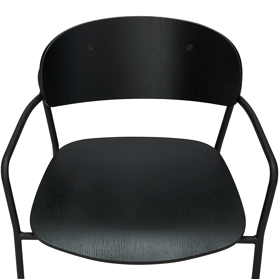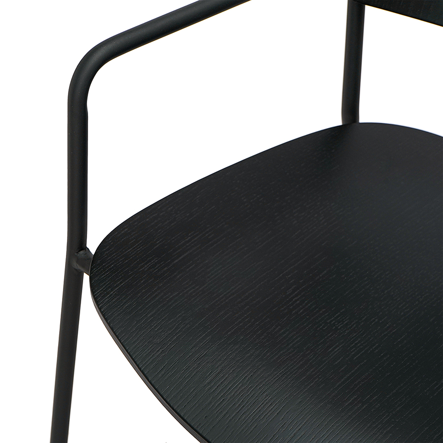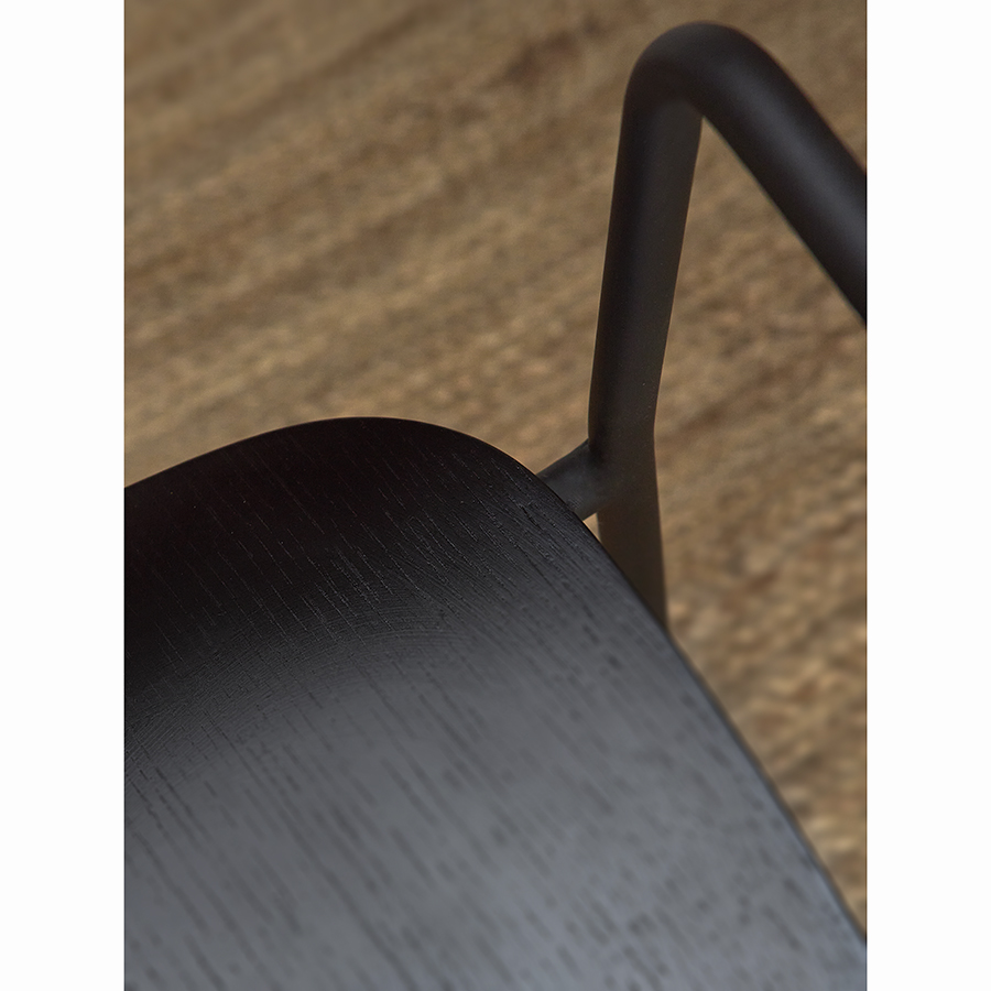 Материалы: фанера, шпон ясеня, железо. Высота сиденья: 45 см. Ширина сиденья: 45,5 см. Глубина сиденья: 42,5 см. Высота спинки: 31,5 см. Ширина спинки: 46 см. Высота подлокотников: 15 см. Максимальная нагрузка: 120 кг. Цвет: черный.