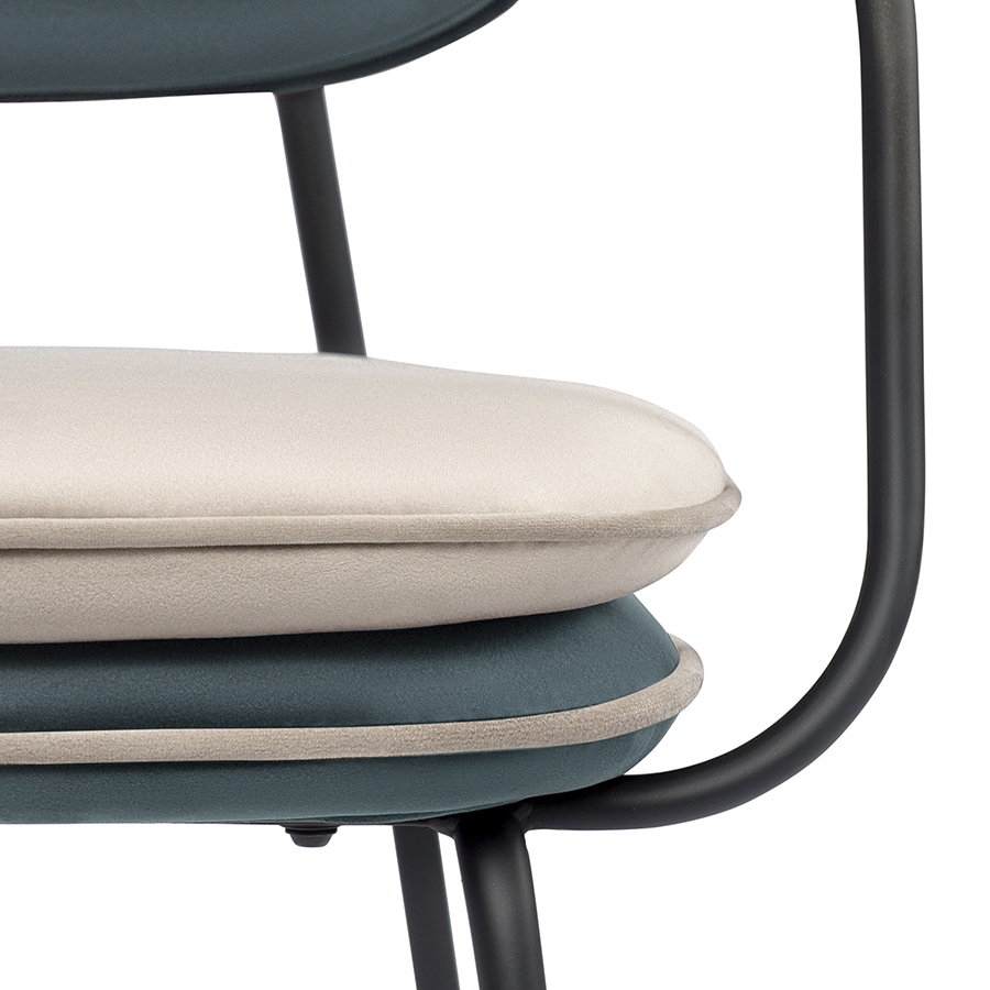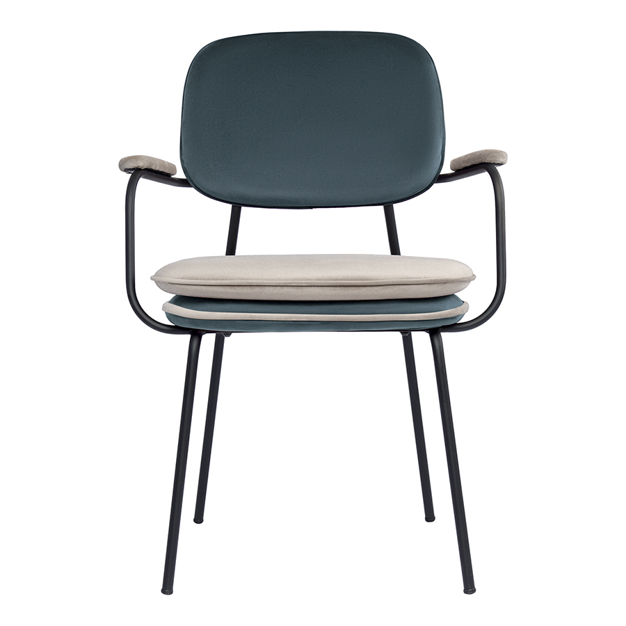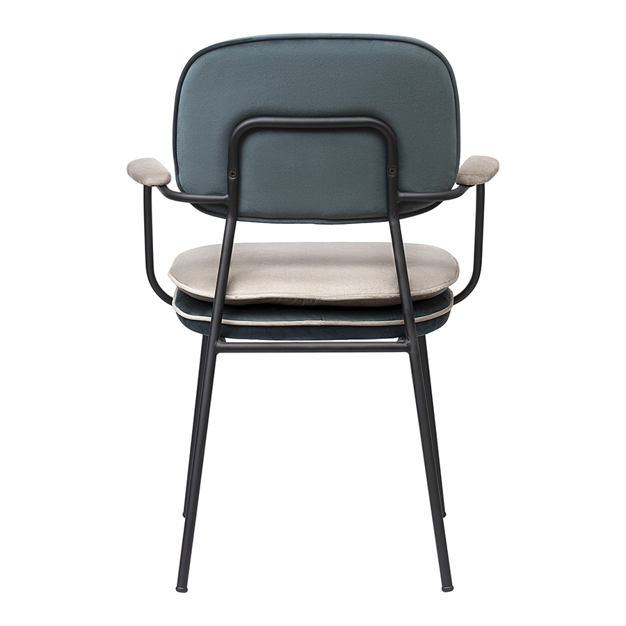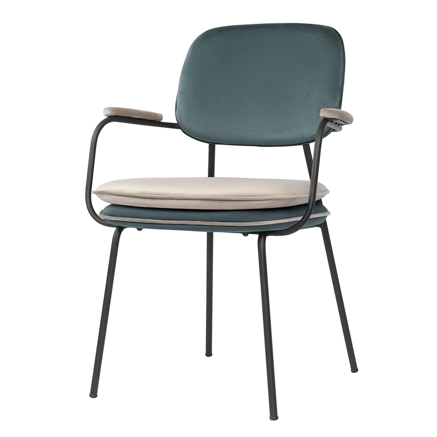 Стул с подлокотниками и контрастным кантом Bergenson Bjorn Pea, велюр, сине-зеленый/бежевый