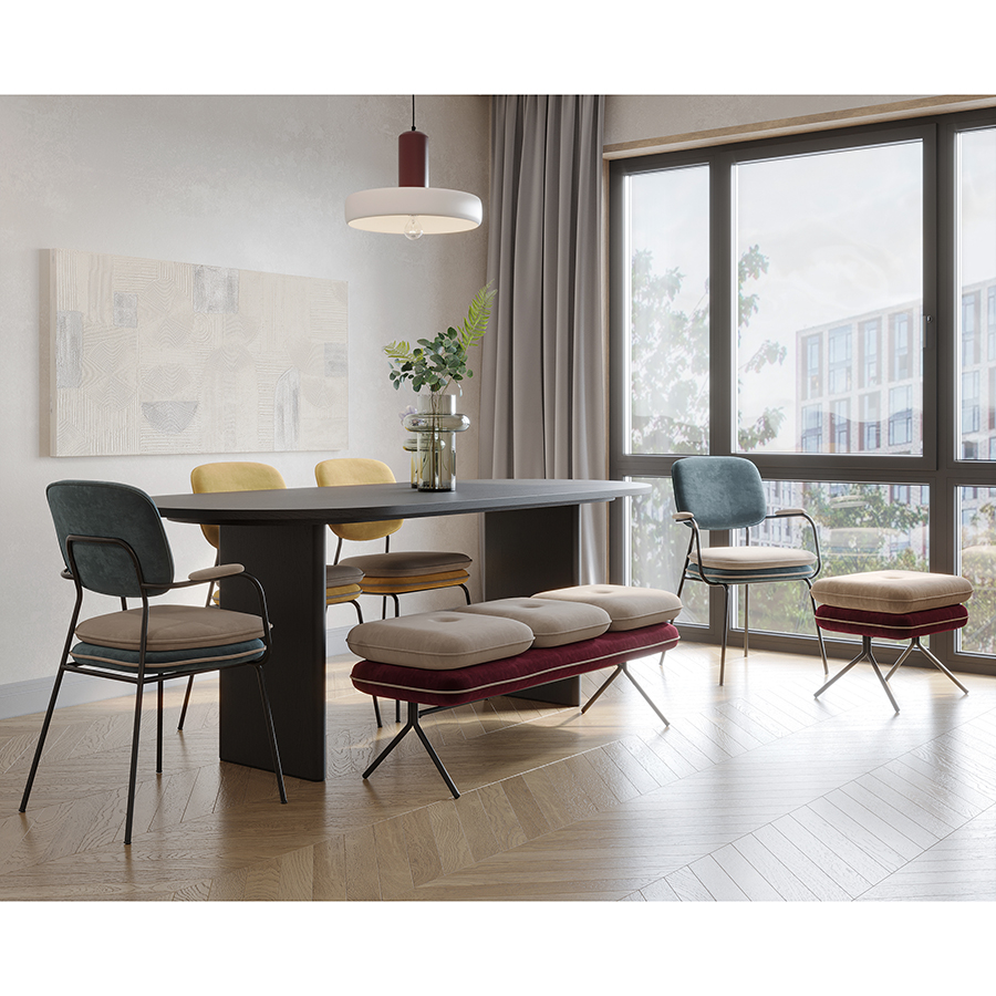 Стул Pea с подлокотниками, контрастным кантом и мягкой обивкой из бархатистого велюра станет настоящим украшением интерьера и идеальным выбором для ценителей качественной и элегантной мебели.Особенности и преимущества: