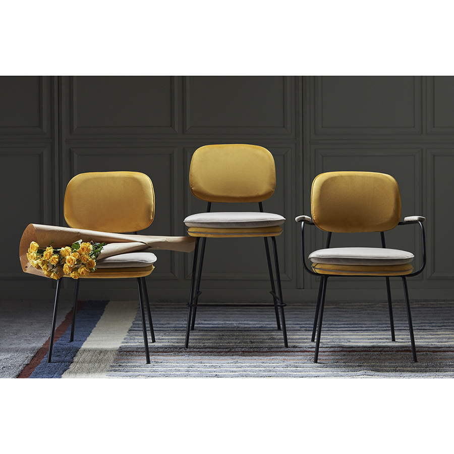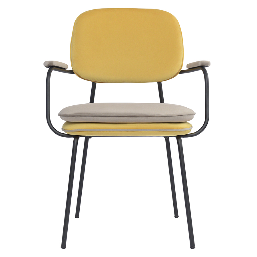 Вы можете купить Стул с подлокотниками и контрастным кантом Bergenson Bjorn Pea, велюр, желтый/бежевый оптом в нашем магазине, предложим цену с оптовой скидкой.