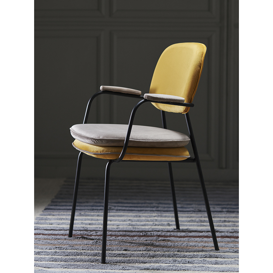 Стул с подлокотниками и контрастным кантом Bergenson Bjorn Pea, велюр, желтый/бежевый