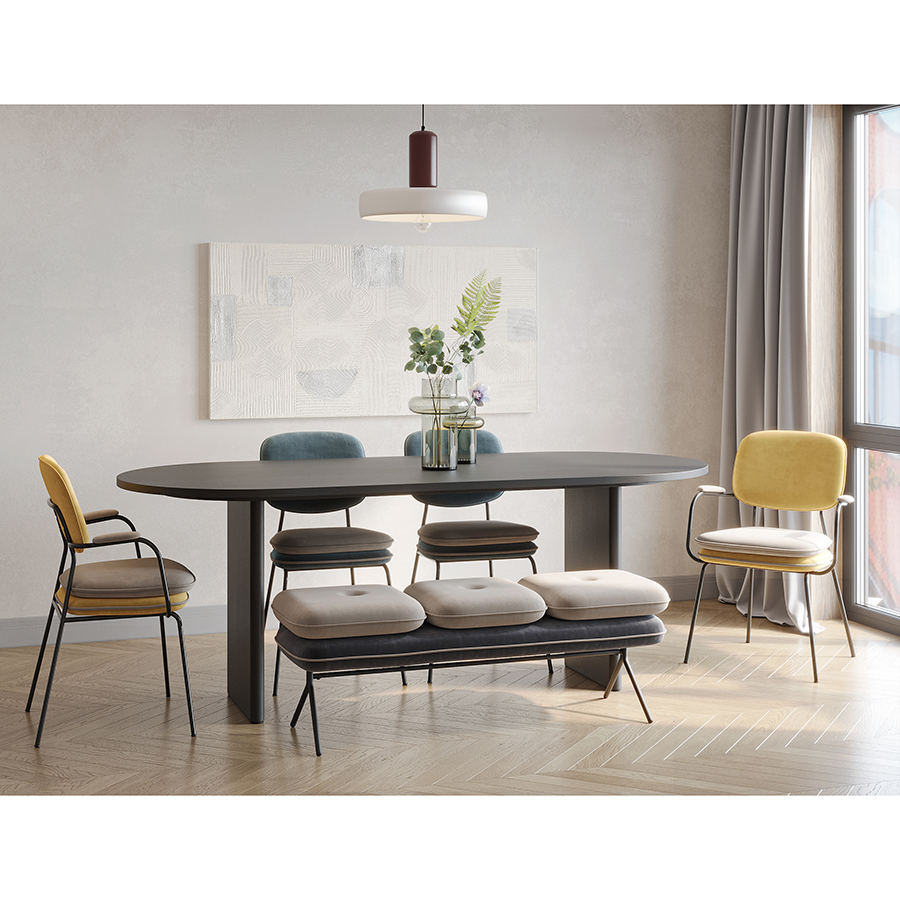 Стул Pea с подлокотниками, контрастным кантом и мягкой обивкой из бархатистого велюра станет настоящим украшением интерьера и идеальным выбором для ценителей качественной и элегантной мебели.Особенности и преимущества: