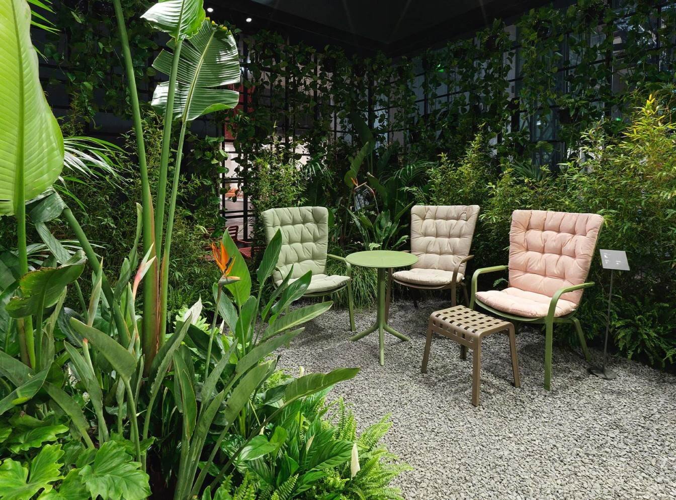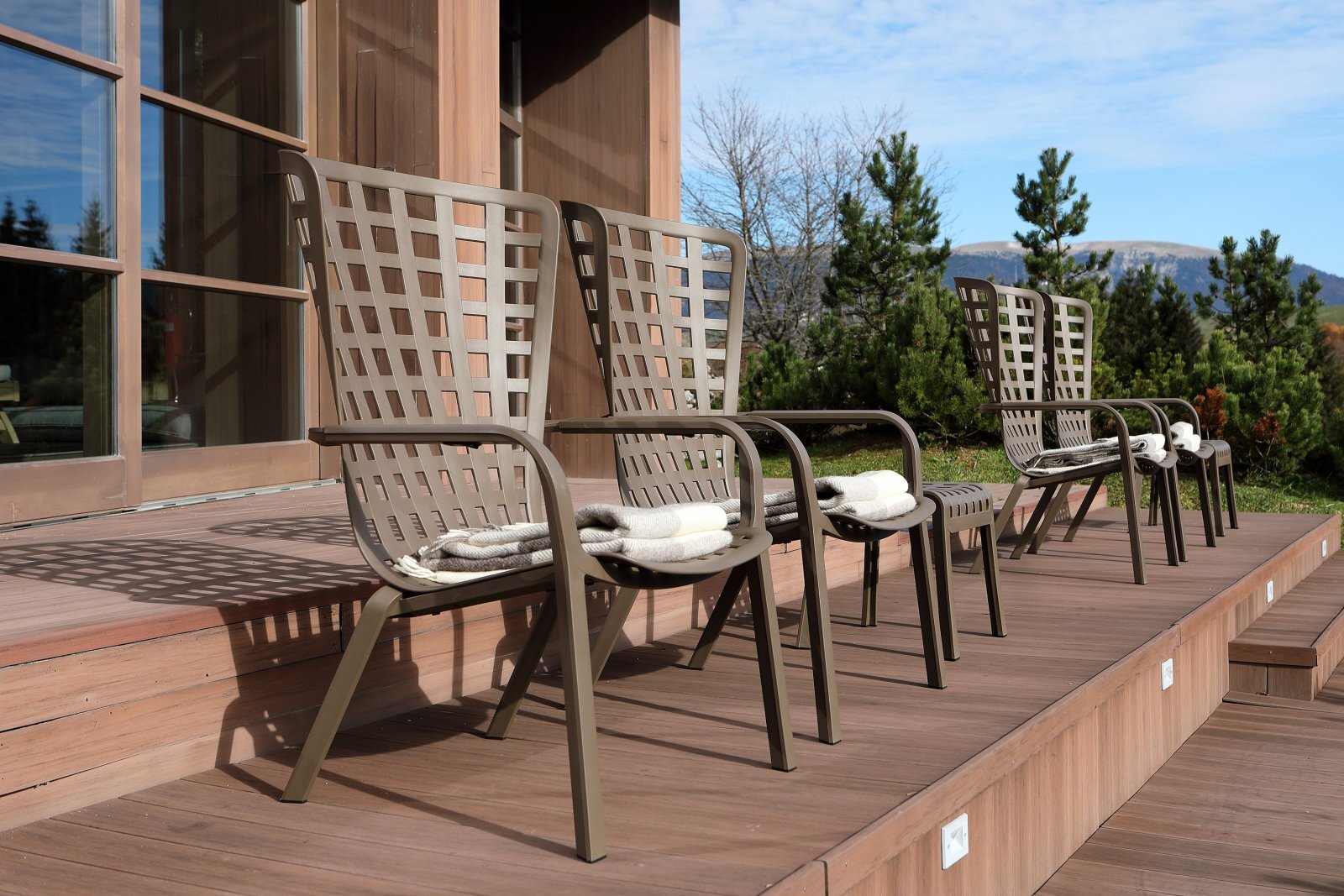 Оснащен нескользящими ножками, поэтому его можно разместить возле бассейна.