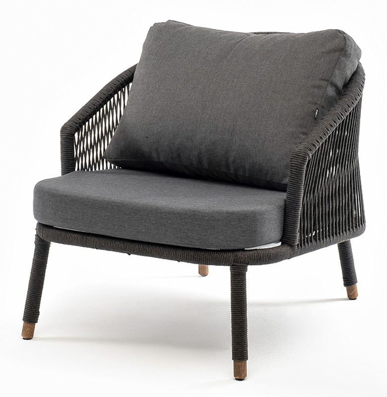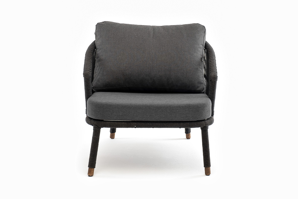 "Верона" кресло плетеное из роупа, каркас алюминий темно-серый (RAL7024) муар, роуп темно-серый круглый, ткань темно-серая 027 | |