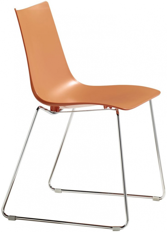 Вы можете купить Стул пластиковый на полозьях Scab Design Zebra Technopolymer, хром, оранжевый оптом в нашем магазине, предложим цену с оптовой скидкой.