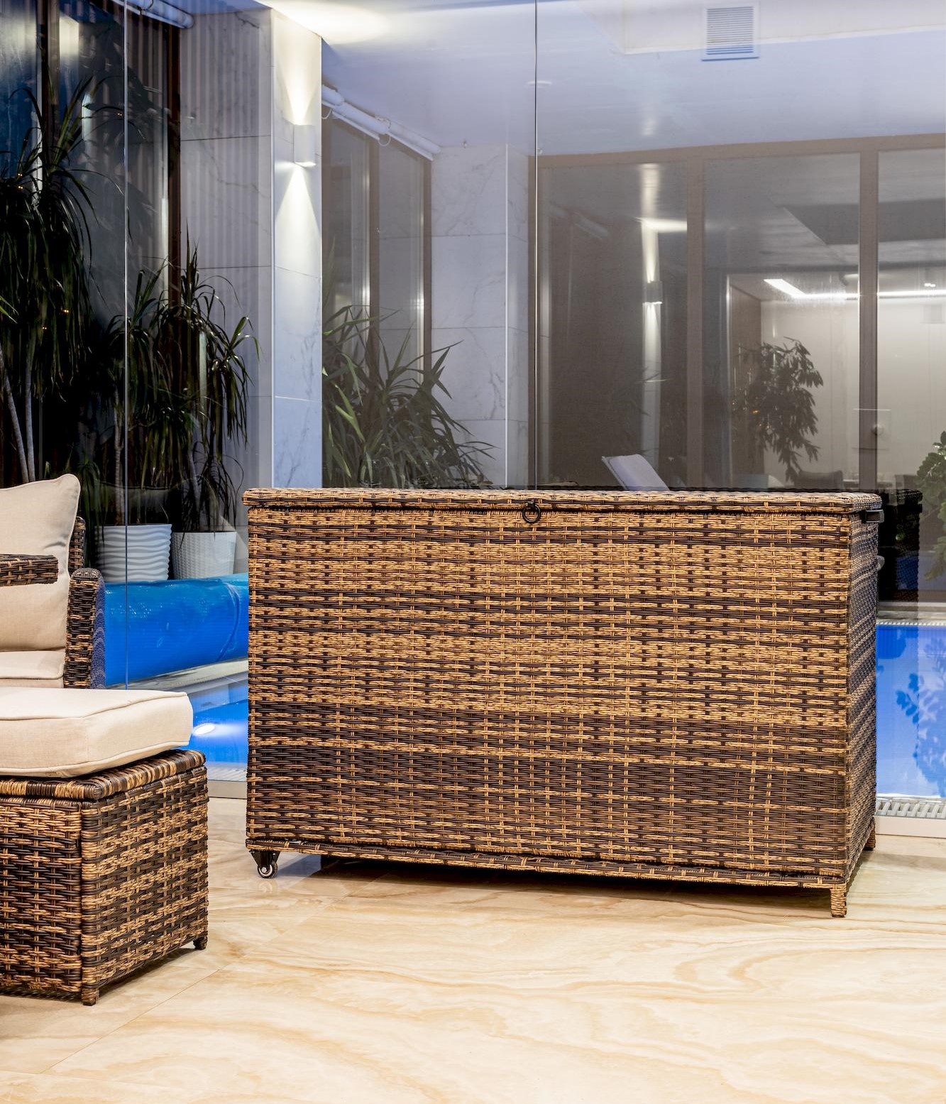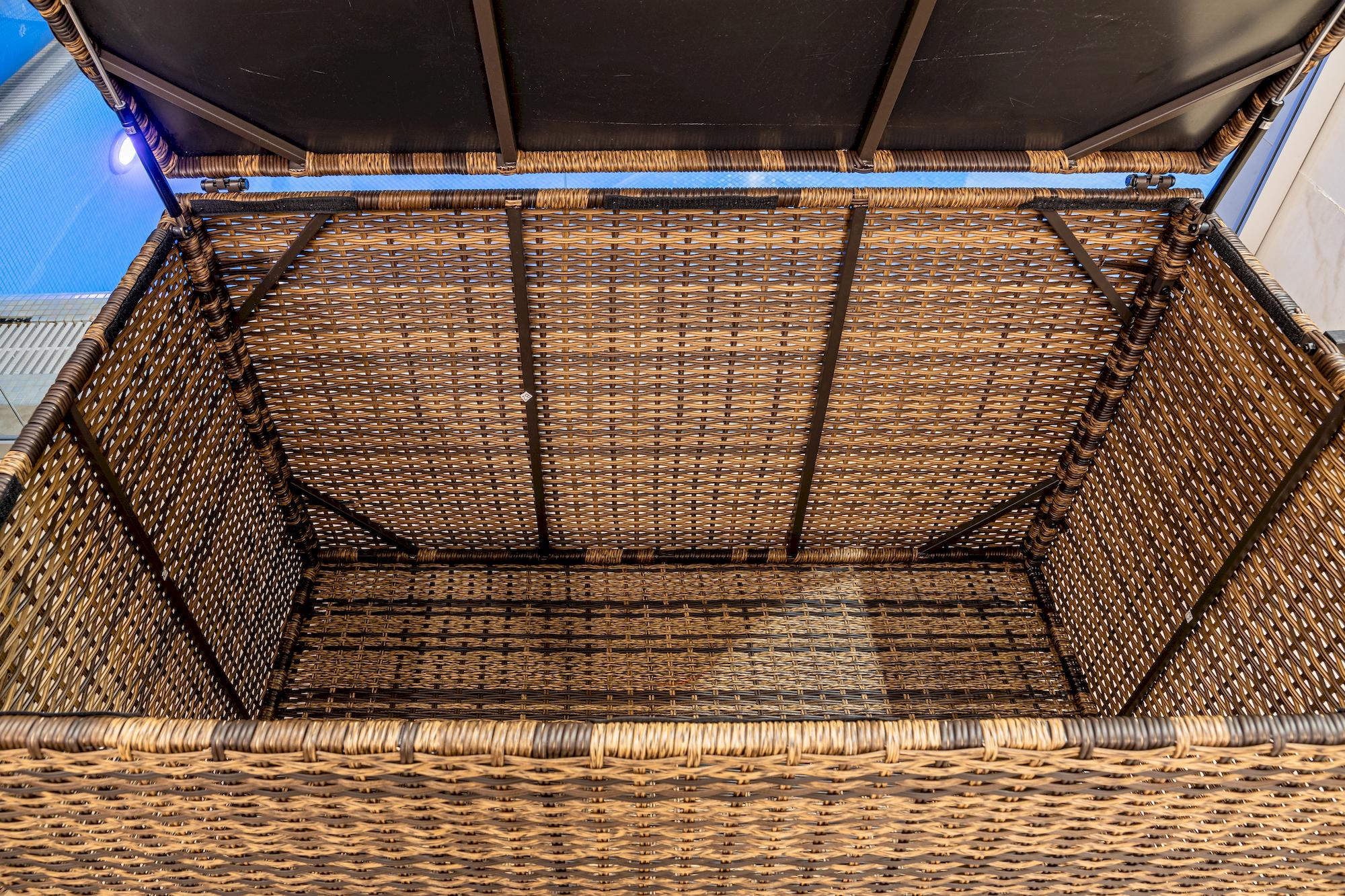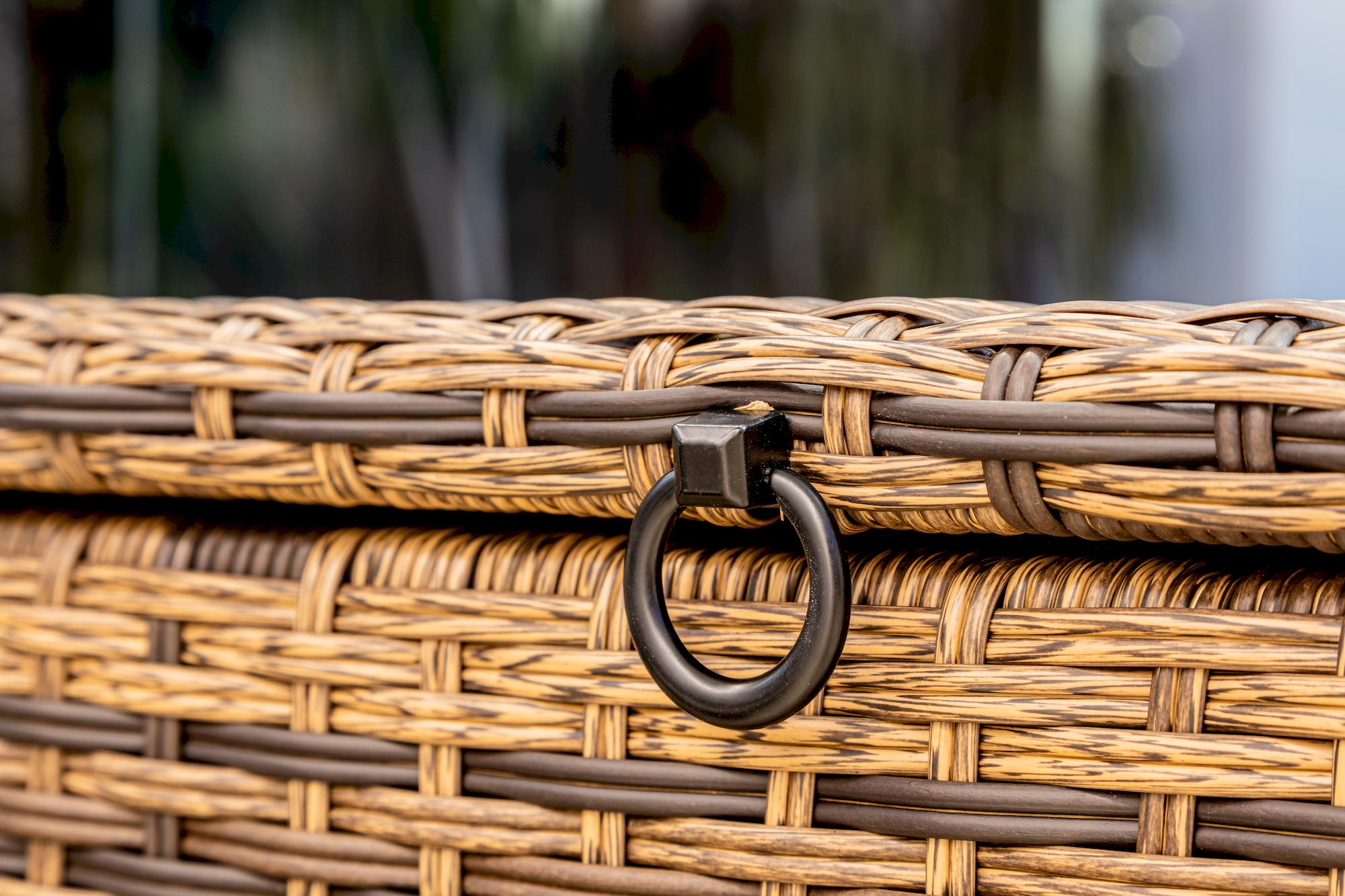 Габариты: Сундук – 120х70х78 см Материалы: Материал - искусственный ротанг (ручного плетения) Материал каркаса – сталь Механизм - газлифт Подложка - есть Колёсики - есть Ручка - есть Цвет - Коричневый Дополнительная информация: Температурный режим - от -50?C до +50?C Сочетается с комплектами бренда ROYAL FAMILY в коричневом цвете Накладки на ножки - да (пластиковые) Категория ротанга - первичная Гарантия и эксплуатация: Гарантийный срок - 1 год Эксплуатационный срок - 10 лет Страна производитель - КитайХарактеристики