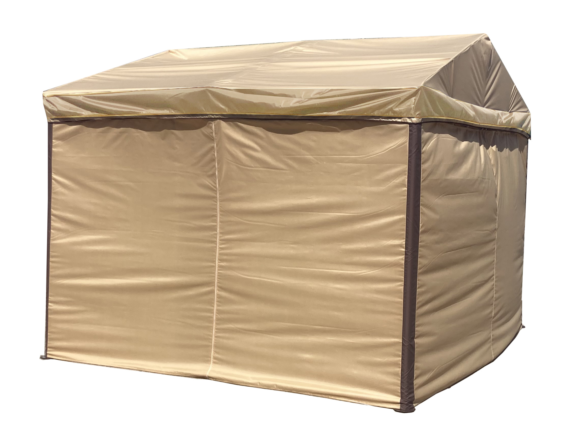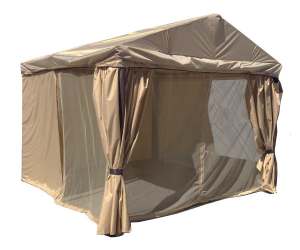 Габариты изделия (Ш/ГхДхВ) : 320х320х260см Цвет каркаса : коричневый Материал каркаса : сталь Покрытие : краска порошковая полимерная Цвет поверхности : бежевый Материал поверхности : оксфорд Дополнительно : высота по коньку 2,55м, высота стоек 2м, высота входного проема 1,85м. Крыша Oxford 420D. Защита от насекомых: пологи из специальной сетки, м/э . Все крепления металл на сварных соединениях, на ножках подножники с отверстиями с анкерами. Страна производства : БЕЛАРУСЬХарактеристики