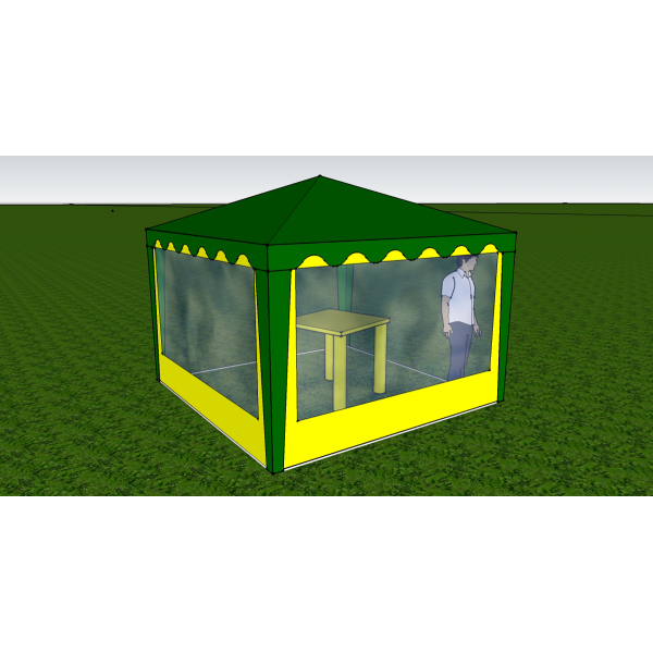 Стенка изготовлена из тентовой ткани Oxford 300D PU 2000 (водостойкость 2000 мм водяного столба), устойчивой к воздействию солнечных лучей. Окно изготовлено из пленки ПВХ.