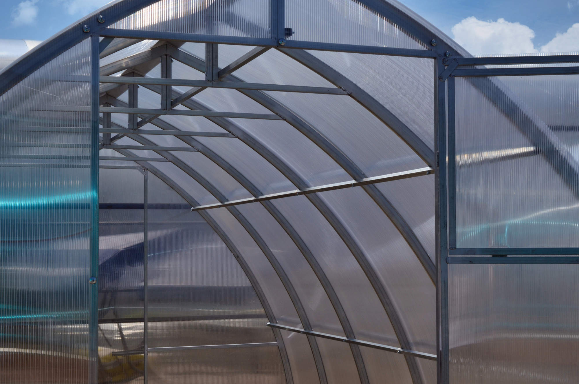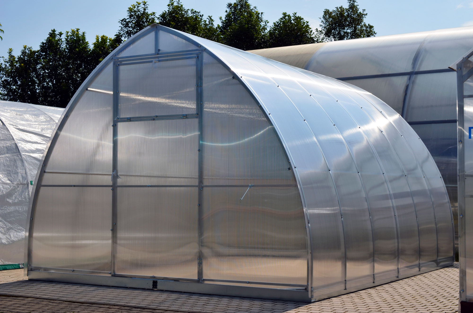 Габариты изделия (Ш/ГхДхВ) : 300х400х226 Габариты упаковок (Ш/ГхДхВ) : каркас 1/1: 115х23х230 Материал каркаса : сталь Труба : 2х2 Покрытие : оцинкованная Дополнительно : Поликарбонат в комплект не входит!!! Расход поликарбоната (лист 2,1*6м): каркас 4м- 3 листа, удлинение 2м- 1 лист Шаг дуги: 67см Выдерживает снеговую нагрузку 110 кг на м2 (соответствует 25 см снежного покрова) , 2 двери, 2 форточки.В комплекте все необходимые для сборки болты и саморезы. Страна производства : РОССИЯХарактеристики