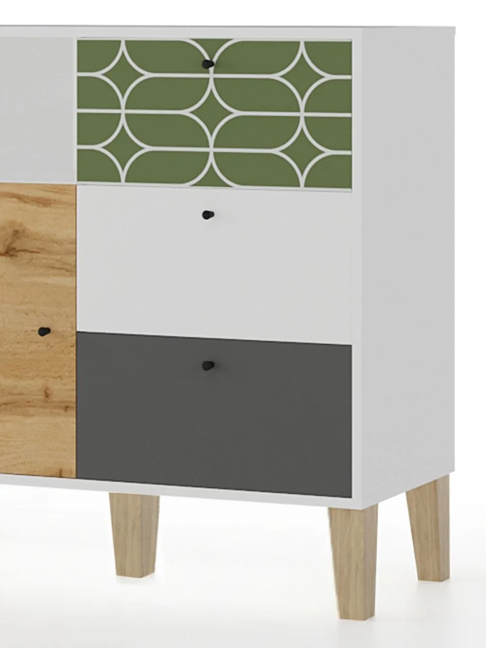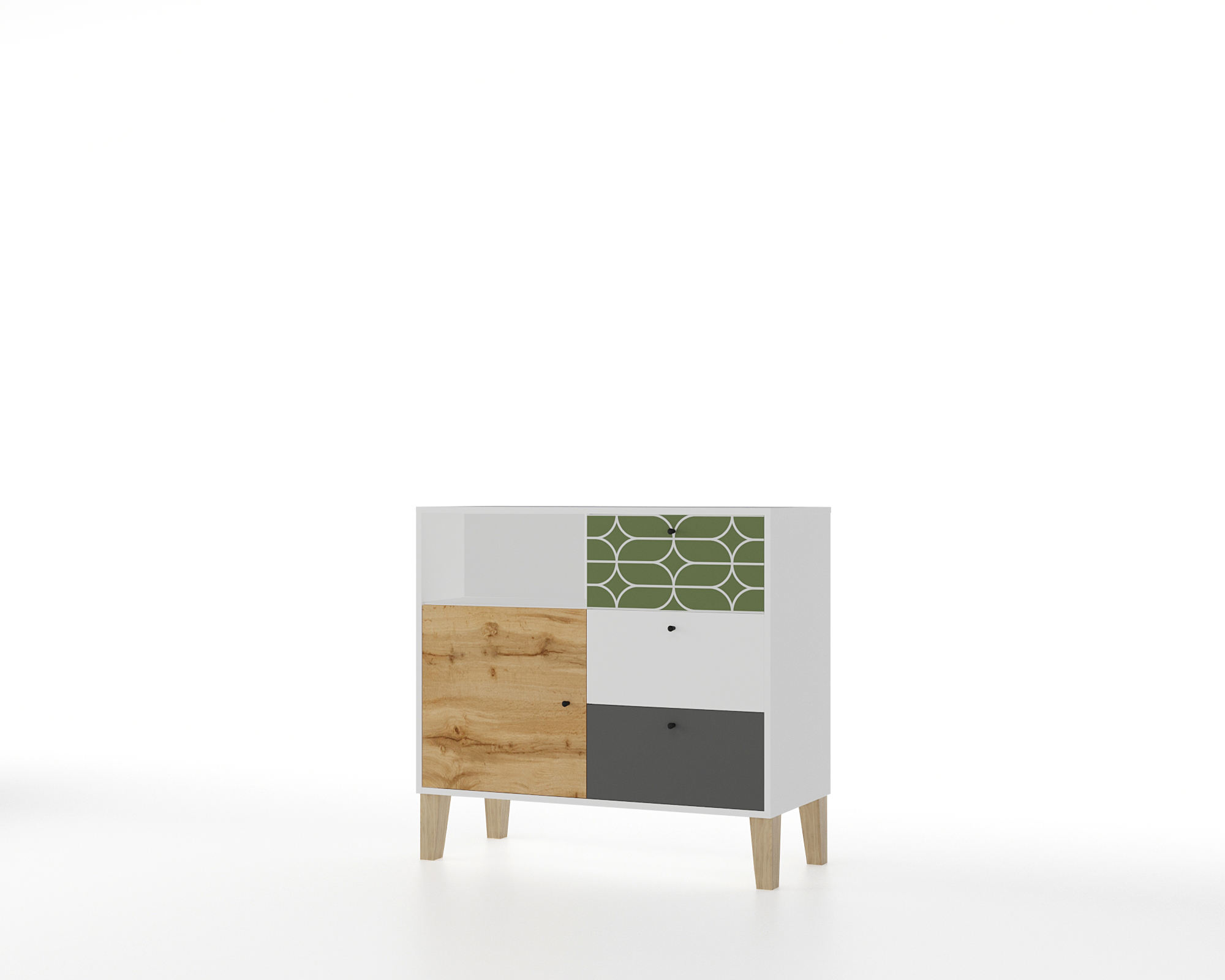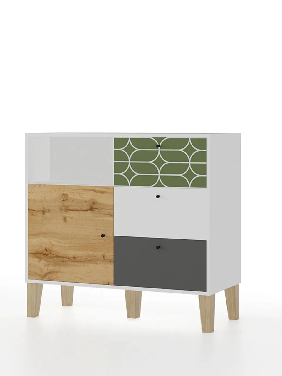 Комод МАМА 3 ящика с дверью STORY Овалы, Белый
