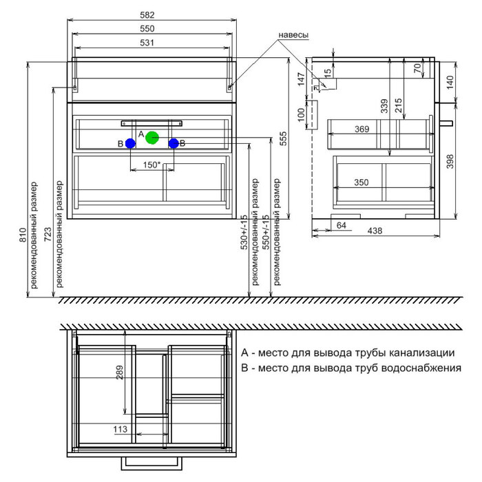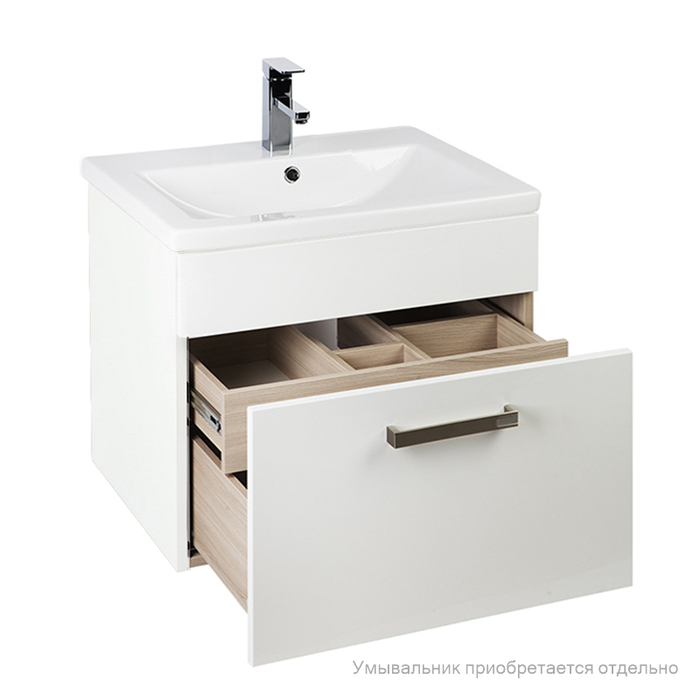 Тумба для ванной комнаты, подвесная. Размеры тумбы: 438х582х555 мм (ДхШхВ). Фасад ЛДСП 16 мм, эмаль, цвет белый глянец. Боковины ЛДСП 16 мм, эмаль, цвет белый. Выдвижной ящик с механизмом плавного доведения, внутренний ящик для мелочей без доводчика. Упаковка: картон, пленка, пенопластовые уголки.Инструкции