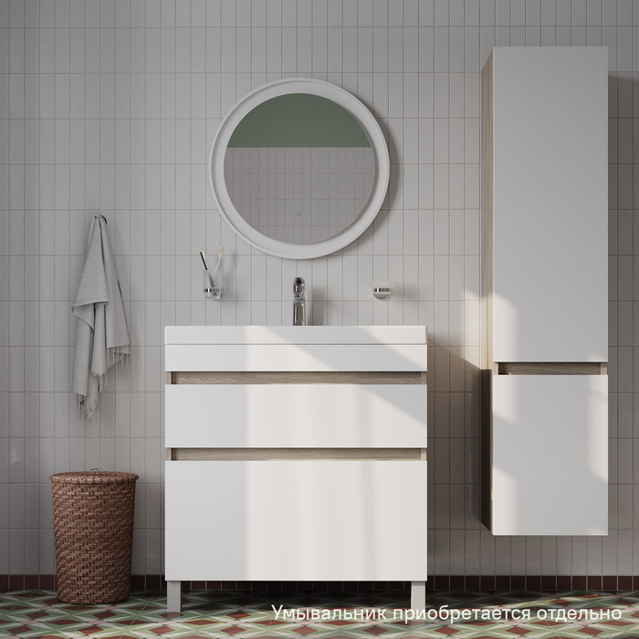 Тумба напольная с ящиками IDDIS Zodiac, 80 см, белая/под дерево, ZOD8ABFi95