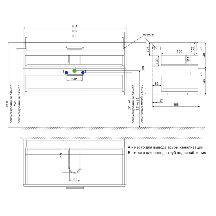 Вместительная подвесная тумба Brick с плоским фарфоровым умывальником (приобретается отдельно) станет незаменимым дополнением для ванных комнат различной планировки в современном стиле. Сочетание белого глянца и сатиновых ручек делает коллекцию особенной. Подвесной тип монтажа тумбы Brick поможет добавить в пространство ванной воздушности и существенно упростить процесс уборки. Рекомендуется использовать только оригинальную модель умывальника IDDIS® (арт. 0101000i28). • Подвесная тумба IDDIS® оснащена надежными креплениями, рассчитанными на большой вес и позволяющими равномерно распределять нагрузку. Вся фурнитура мебели IDDIS® рассчитана на 30 000 открываний, что составляет более 10 лет исправной работы. • Два выдвижных ящика закрываются плавно и бесшумно благодаря высококачественным скрытым направляющим с доводчиками. • Сифон приобретается отдельно. Подходят сифоны IDDIS® арт. 900BVG0010VD, 902BV750VD, 900B000010VD (выпуск приобретается отдельно). Гарантия на мебель IDDIS® – 3 года. (с) Авторский текст, октябрь 2021 г.Инструкции