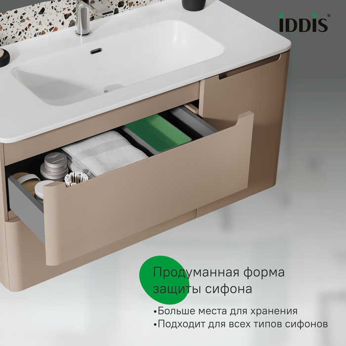 Вместительная тумба Edifice в теплом оттенке капучино (умывальник приобретается отдельно) – воплощение современного минимализма. Мягкие линии корпуса в сочетании с удобными интегрированными ручками выглядят свежо и актуально. Смотрится аккуратно, легко и не усложняет процесс уборки в ванной благодаря подвесной конструкции. Рекомендуется использовать только с оригинальной моделью умывальника IDDIS® (арт. 0101000i28). • Надежные крепления рассчитаны на большой вес и позволяют равномерно распределять нагрузку. • Два выдвижных ящика закрываются плавно и бесшумно благодаря высококачественным скрытым направляющим с доводчиками немецкого производства. • Пластиковый ограничитель под сифон в верхнем ящике позволяет максимально эффективно использовать его пространство. • Фурнитура рассчитана на 30 000 открываний, что составляет более 10 лет исправной работы. Гарантия на мебель IDDIS® – 3 года. (с) Авторский текст, август 2023 г.Инструкции