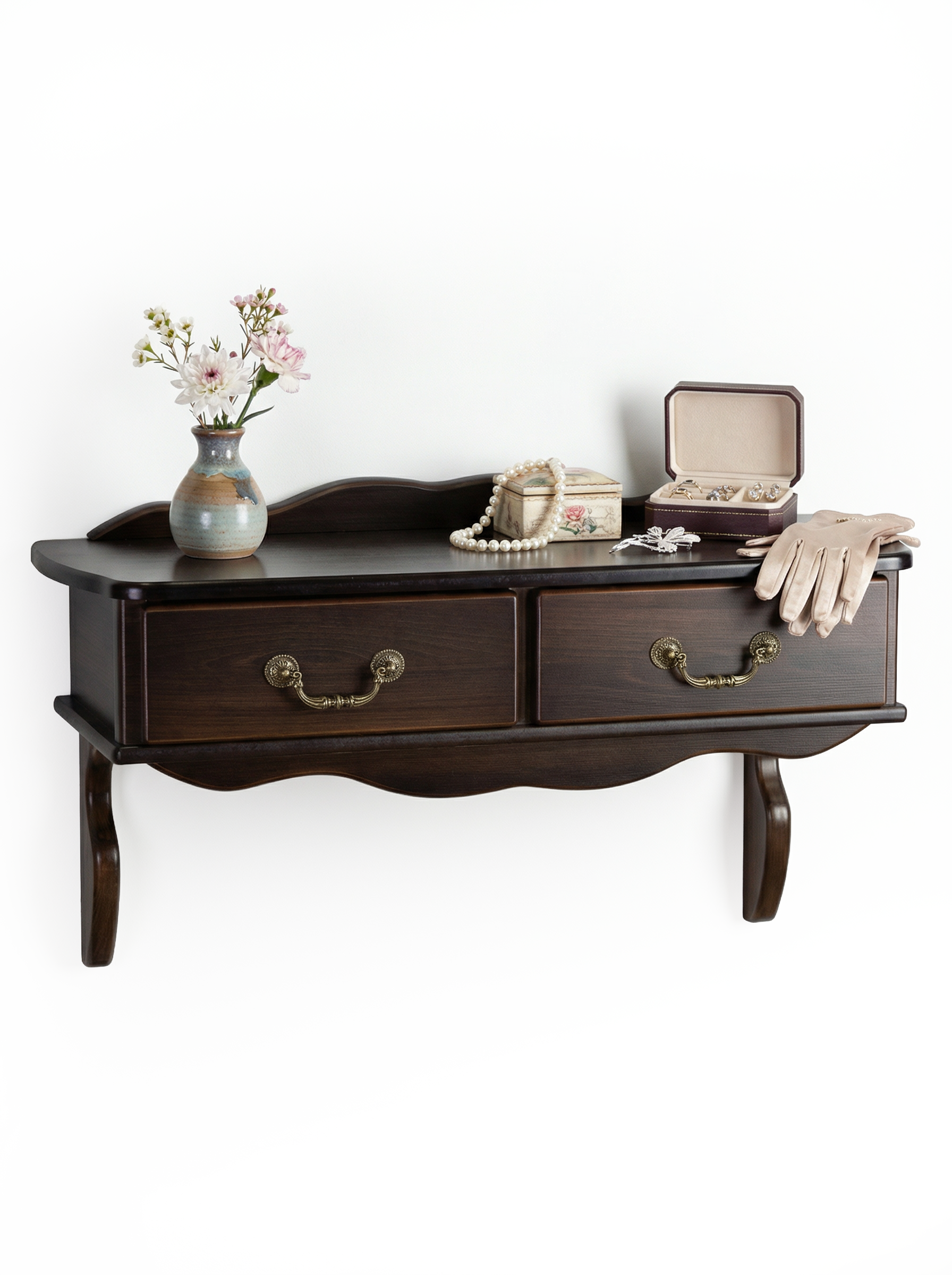 Изысканная консоль Берже 20 сочетает в себе изящество и функциональность. Деревянная модель выполнена из ЛМДФ, что обеспечивает прочность и долгий срок службы. Два вместительных ящика станут отличным местом для хранения косметики, аксессуаров и других мелочей. Материалы: ЛМДФ, лак Упаковка: 86х40х19 см., 1место Вес: 16 кг Цвет: темно коричневый, белый ясеньХарактеристики