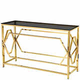 Вы можете купить Консольный столик LA ALTA ESCADA тонированное стекло 140*40, каркас золото оптом в нашем магазине, предложим цену с оптовой скидкой.